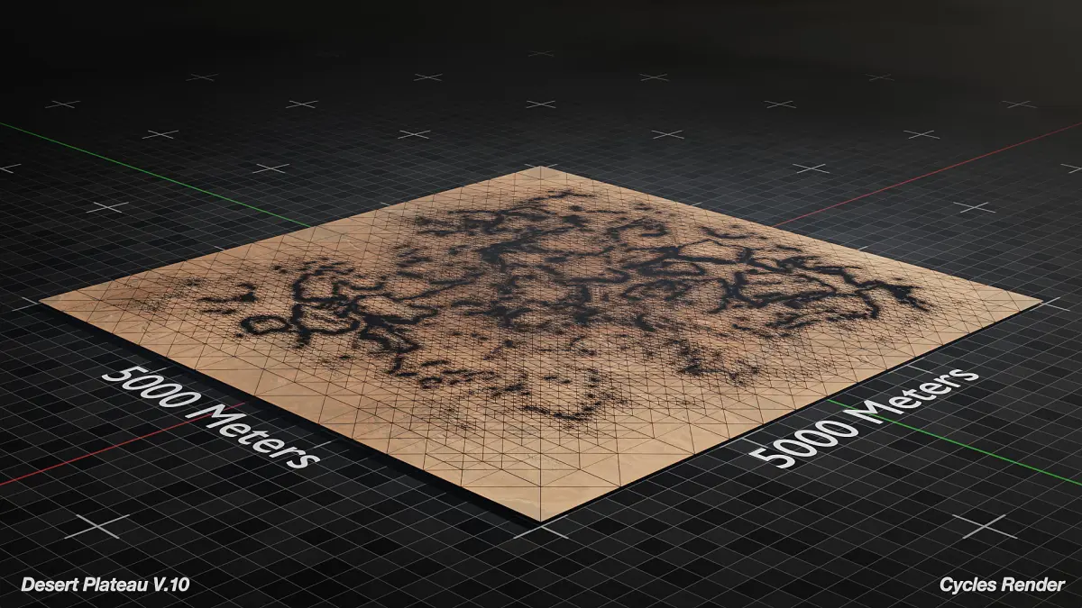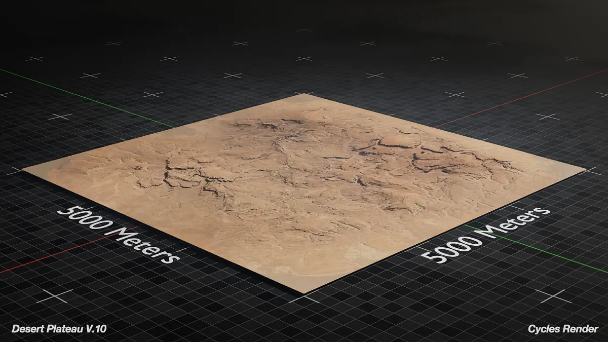 Optimized 3D Model of Large Desert Plateau ready for Cinematics, Animations, and Games. This asset is native to Blender and Unreal Engine 5. This asset is based on a 5000x5000 km area but can be scaled to fit your needs and is meant for medium to far shots.