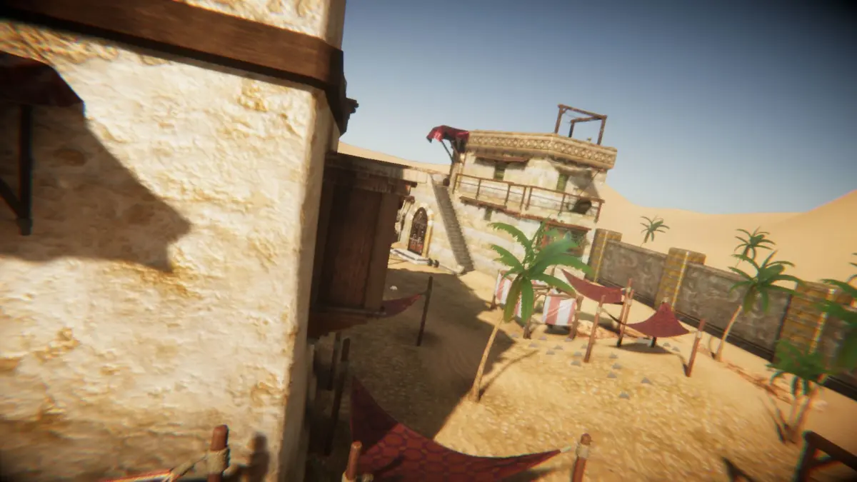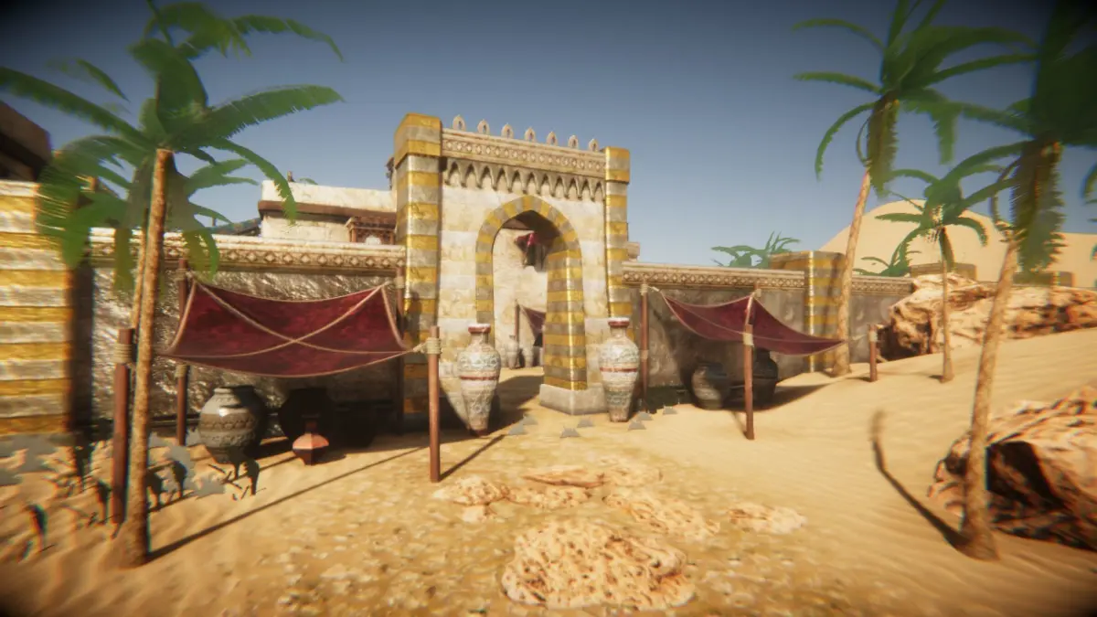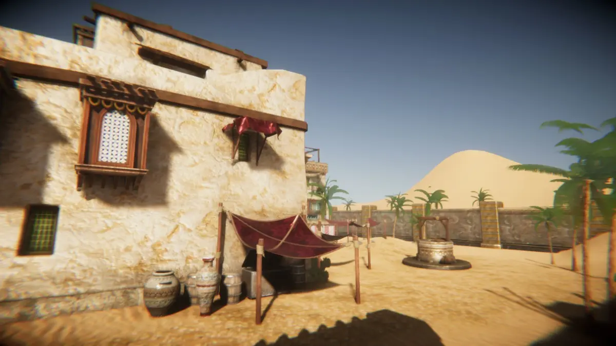 The pack now includes 45 models, including 3 desert houses and additional decorative props like canopies, balconies, pots, barrels, palms and others. Some of the houses have both interior and exterior, some only exterior.
