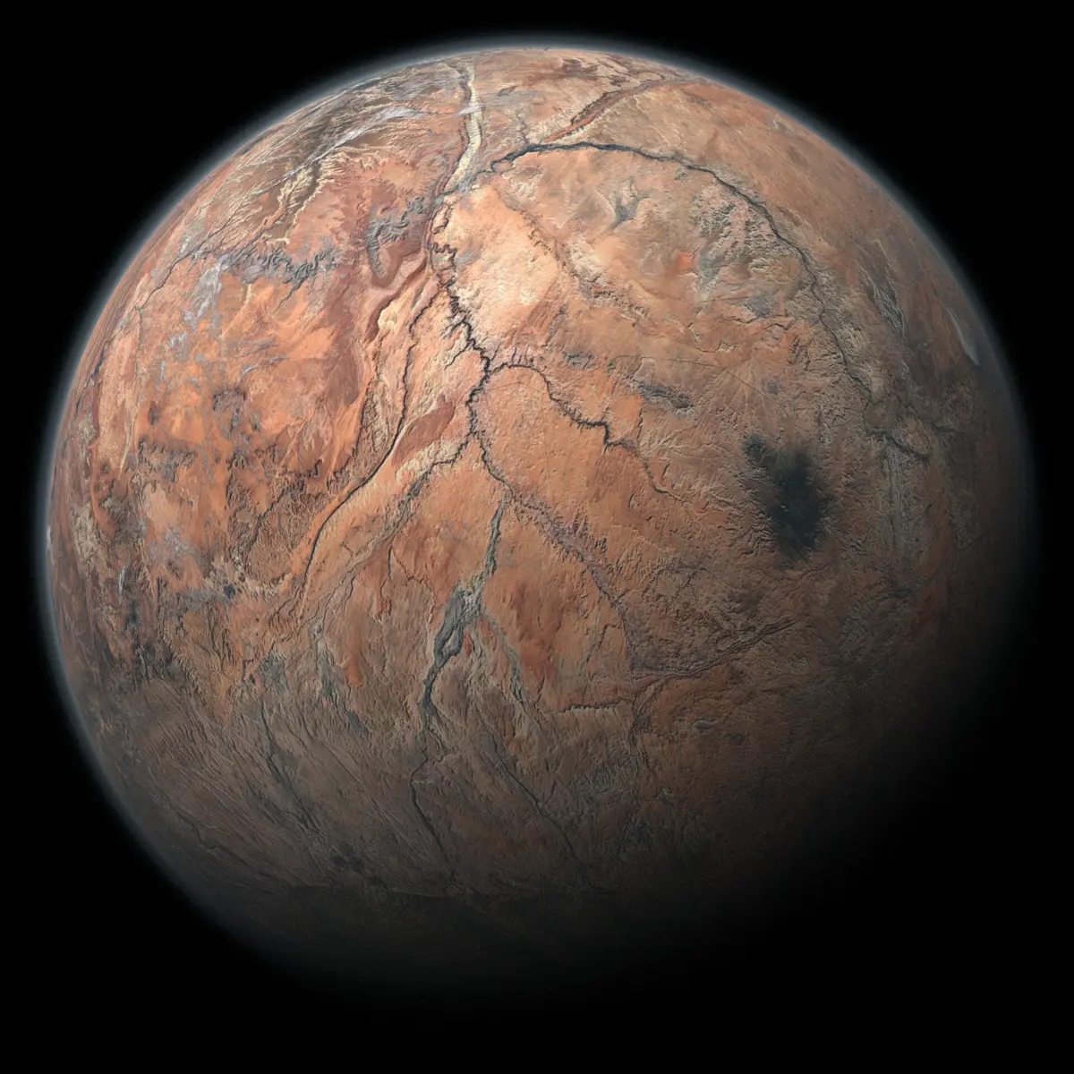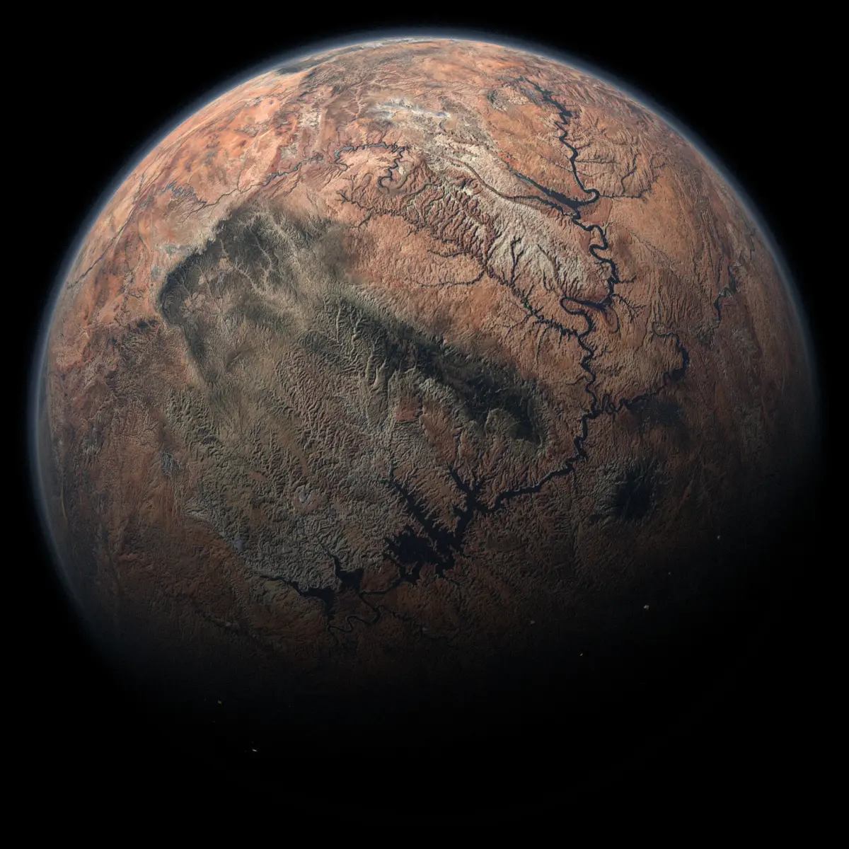 8000x4000 seamless, equirectangular planet texture of a generic desert-like planet. Includes dedicated diffuse, bump, specular, cloud, cloud bump, and light maps all generated using Blender and Gimp. Three different light maps were created to resemble different kinds of planet population: urban, rural, and metropolis. These can be used individually or combined for varied lighting effects.