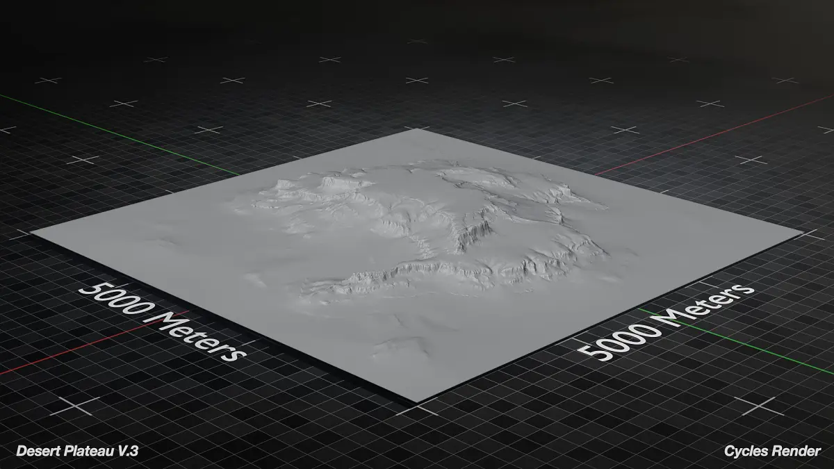 Optimized 3D Model of Large Desert Plateau ready for Cinematics, Animations, and Games. This asset is native to Blender and Unreal Engine 5. This asset is based on a 5000x5000 km area but can be scaled to fit your needs and is meant for medium to far shots.
