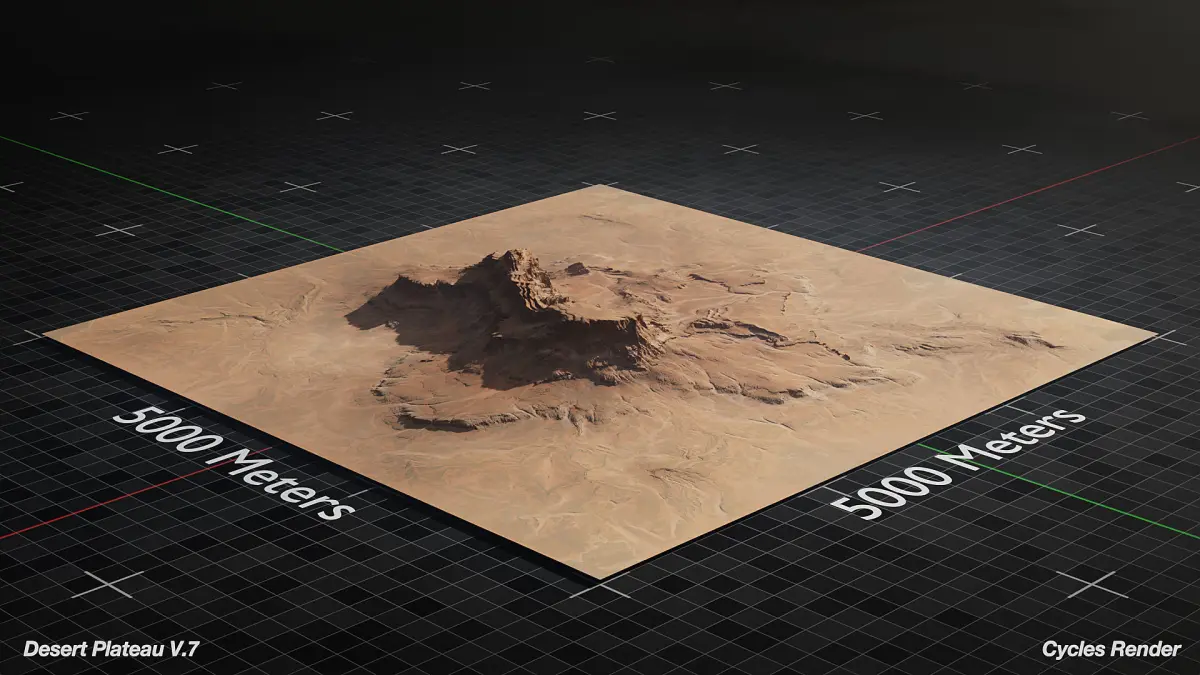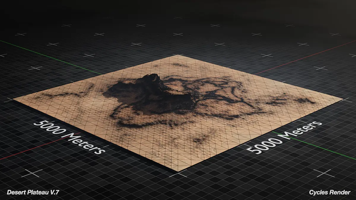 Optimized 3D Model of Large Desert Plateau ready for Cinematics, Animations, and Games. This asset is native to Blender and Unreal Engine 5. This asset is based on a 5000x5000 km area but can be scaled to fit your needs and is meant for medium to far shots.