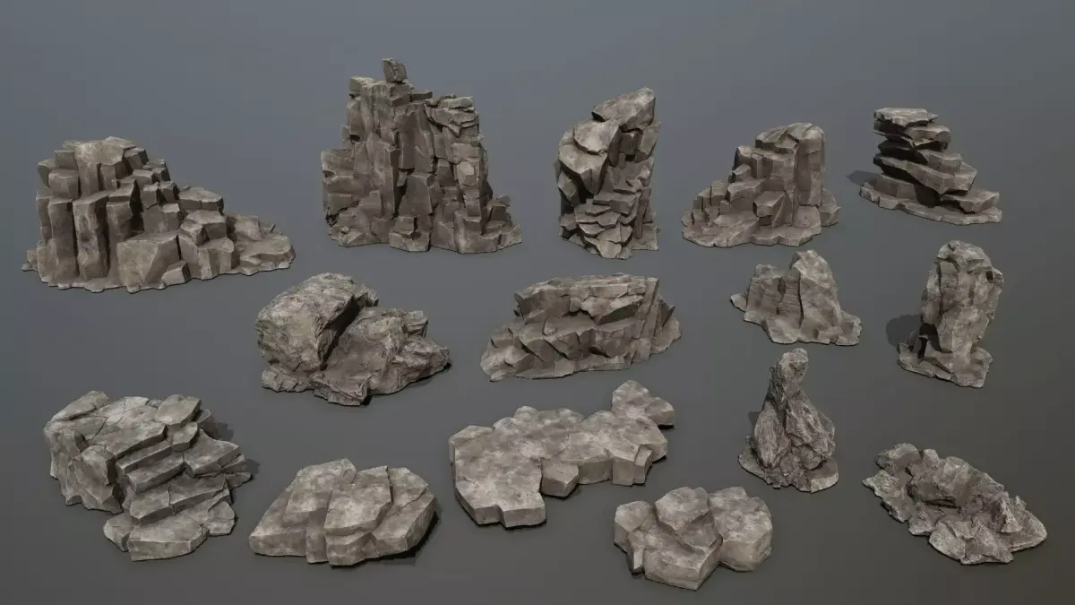 Rocks_15_lod_1_....5038 polygon. ....... 2594 vertices.