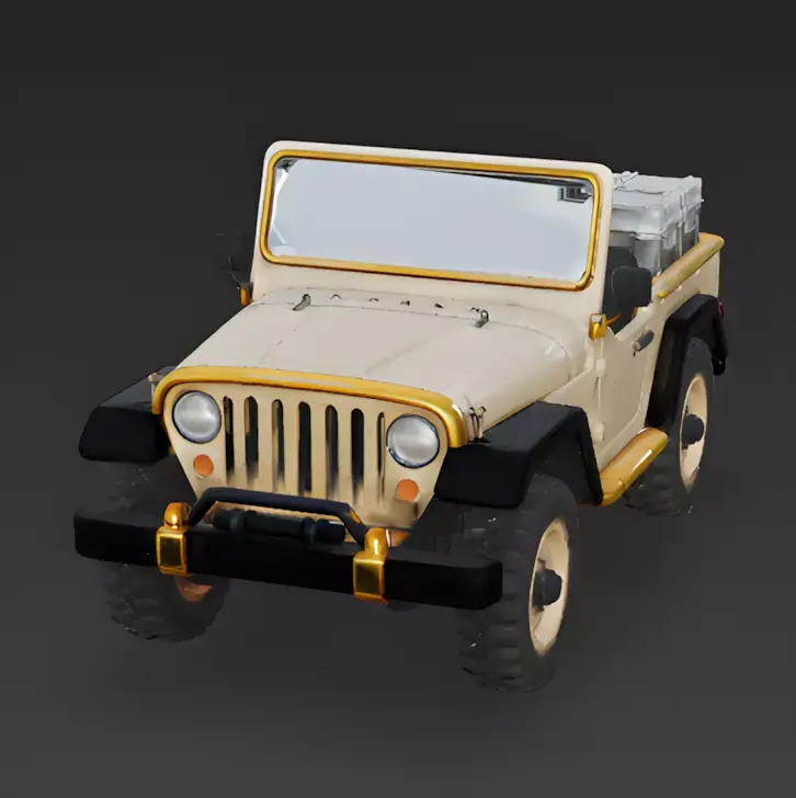 The Overall ConceptThis asset is a high-speed scout vehicle built for harsh environments. It is a desert-reconnaissance military jeep featuring a tan sand color scheme and luxurious gold trim, making it a perfect hero vehicle for tactical shooters, open-world adventures, or stylized military simulators.