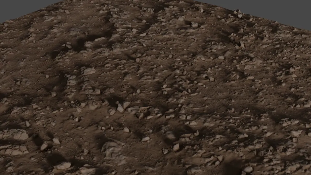 Hi res photoscanned soil/ground area covered with rocks and gravel. The photoscan was made with several hundreds of pics to get the fine details. Model comes with 16384X16384 hires Diffuse and AO maps. Vertices: 2503629Polygons:4999999 Ideal for baking textures from or for use as high detail mesh. obj format