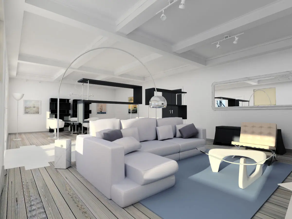 Realistic 3d interior living and dining room with various design furniture. High quality 3d objects with set scenes.