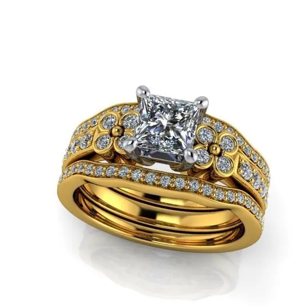 Designer Princess cut 4 Side BezelSet Stone Ring Modern Look 3D print model