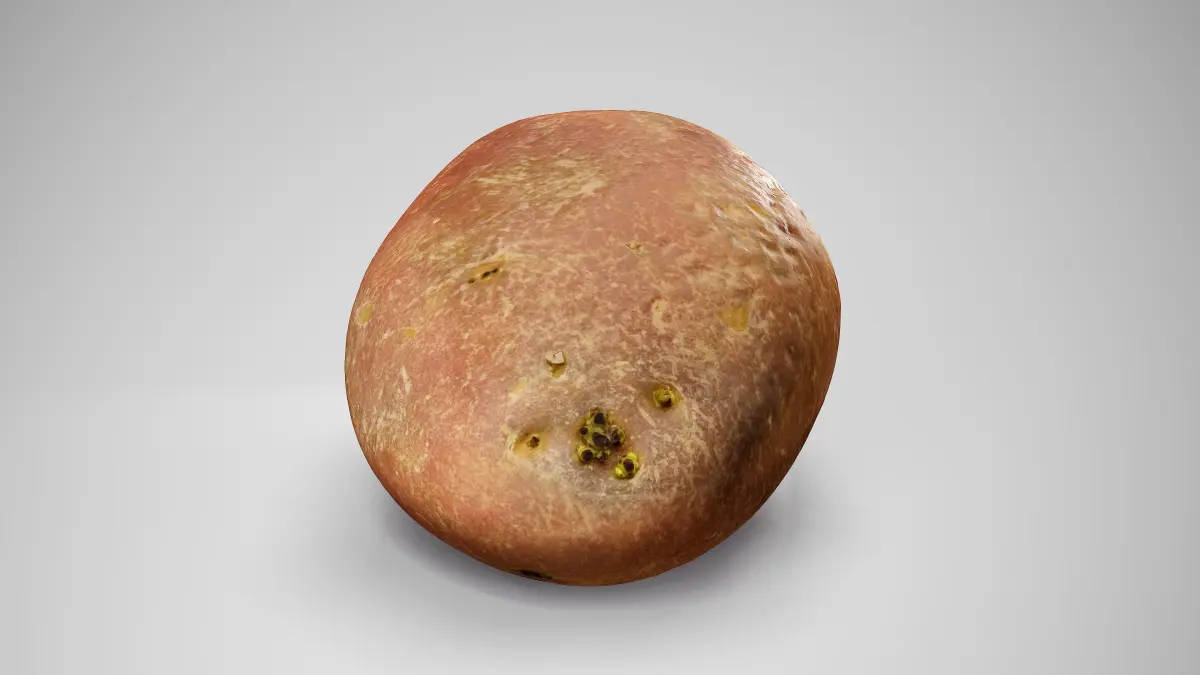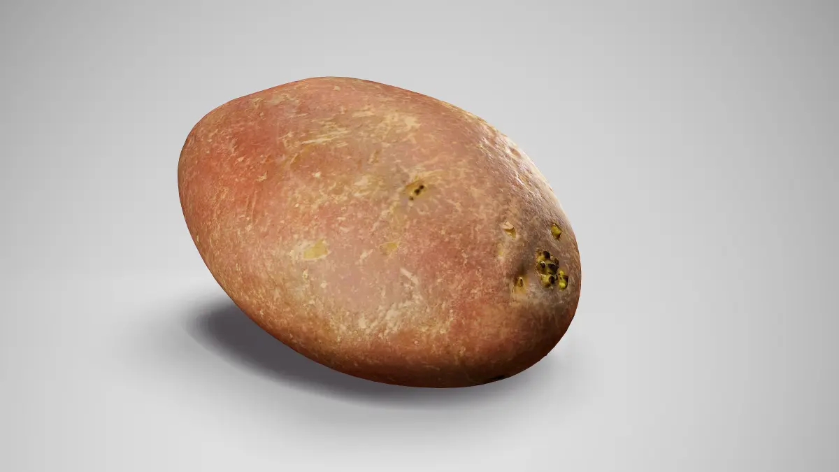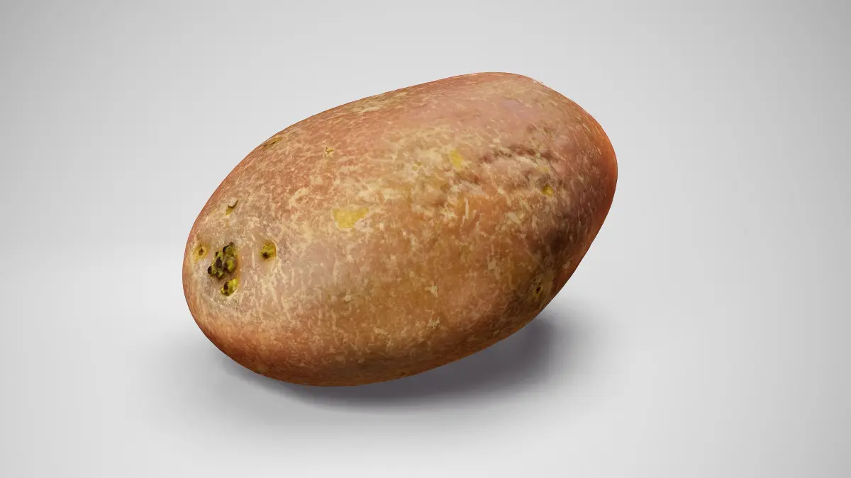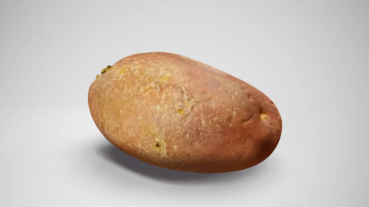 This Désirée Potato is a high-quality, photorealistic 3D model, created using photogrammetry, and then optimized for production using a variety of software. The rendered images in the preview were done in Marmoset Toolbag 4, and a very basic light setup.