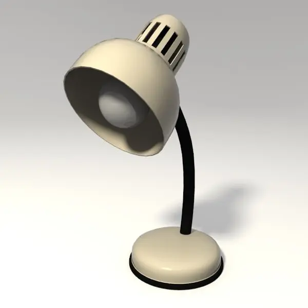 Detailed 3D model of a desk lamp. Ready for quality renders. Pivot is set to the base of the object for easy scaling. Material included only in the blend file