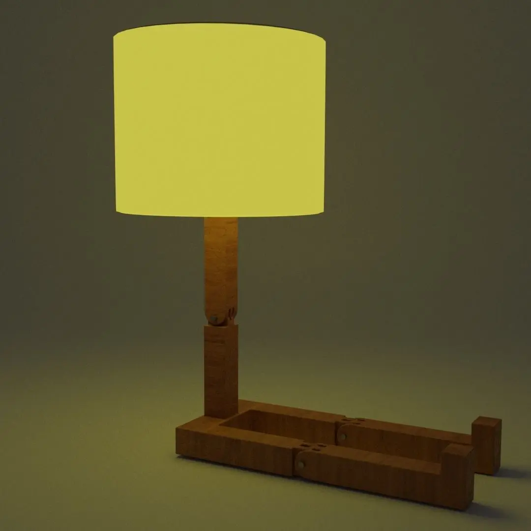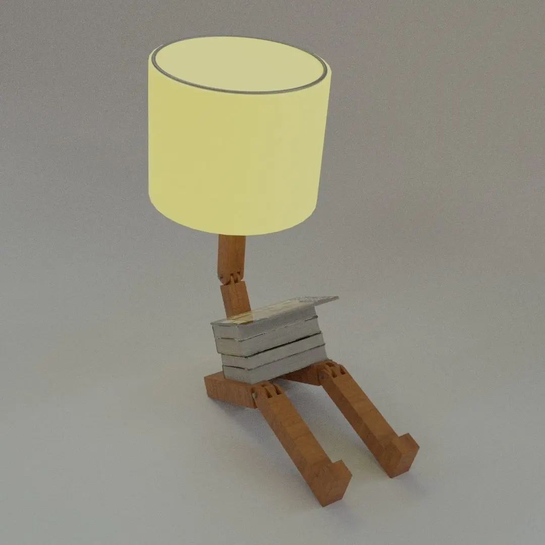 3d model of realistic a sitting lamp with moveable joints for animation or adjustment for scenes.lamp shade has an emission shader so it can be used to light up scenesbody frame uses a high resolution wood texture and procedural cracks for a realistic wooden look, the wood texture is located in the zipped folder