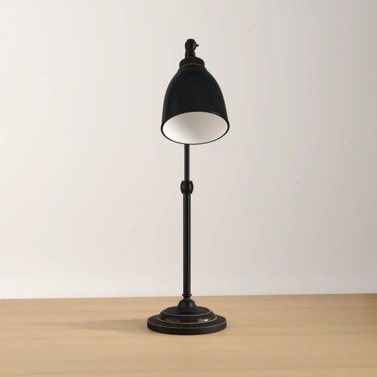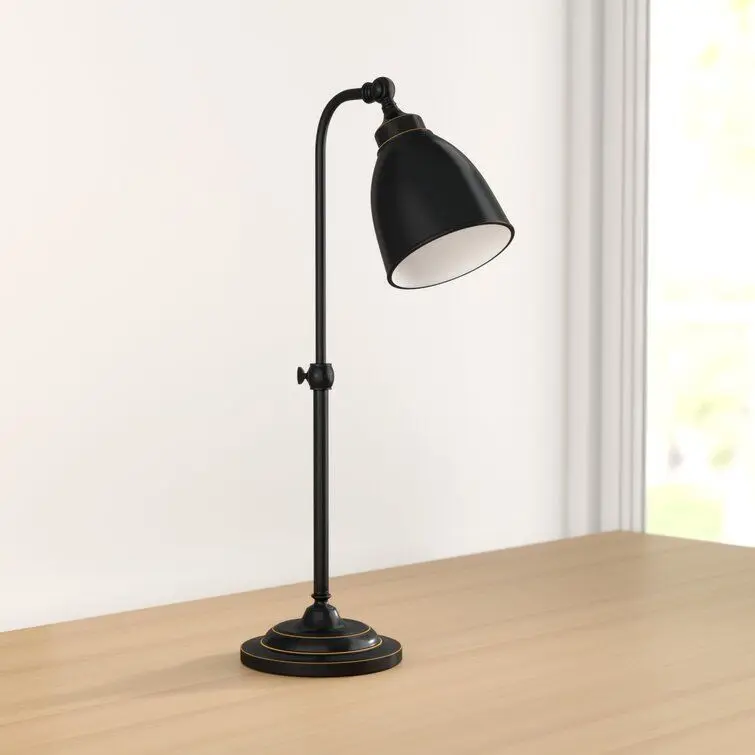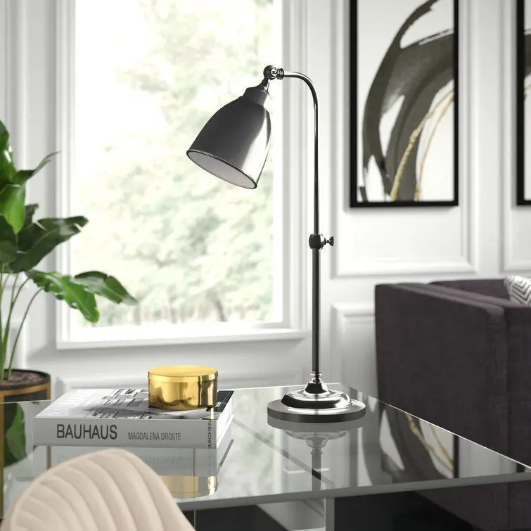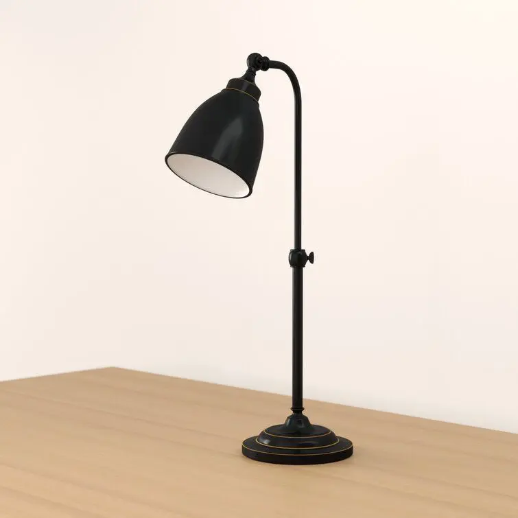 - Illuminate your desktop in style with this task lamp. Crafted of metal in a fashionable finish, this desk lamp strikes a tubular post silhouette on a molded round pedestal base.