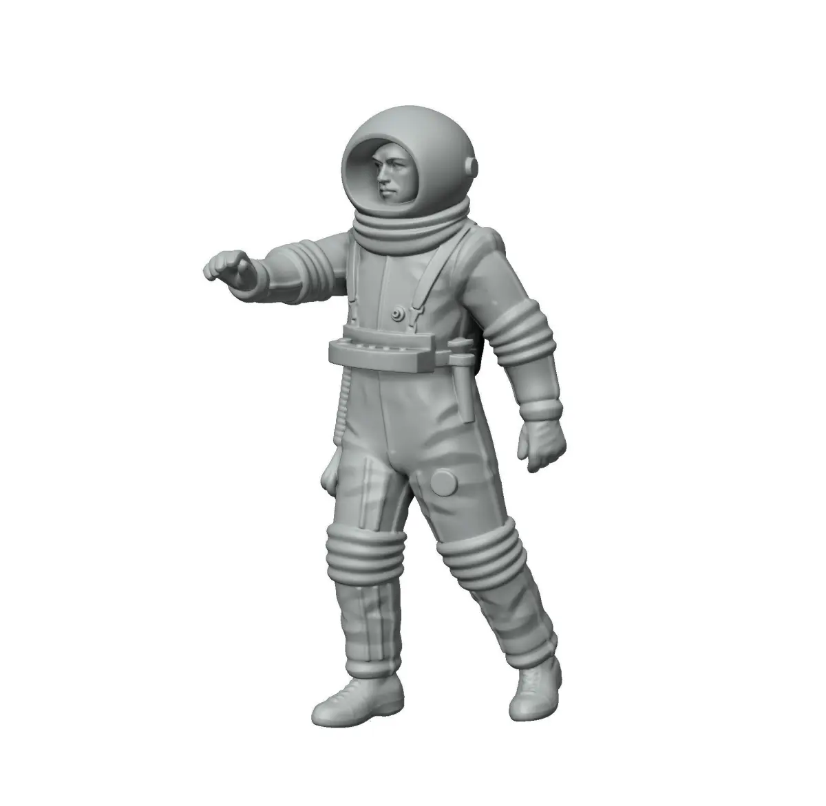 This 3D figure set adds authentic astronaut characters to classic plastic model kits, inspired by early space exploration visions.