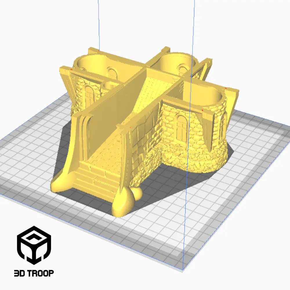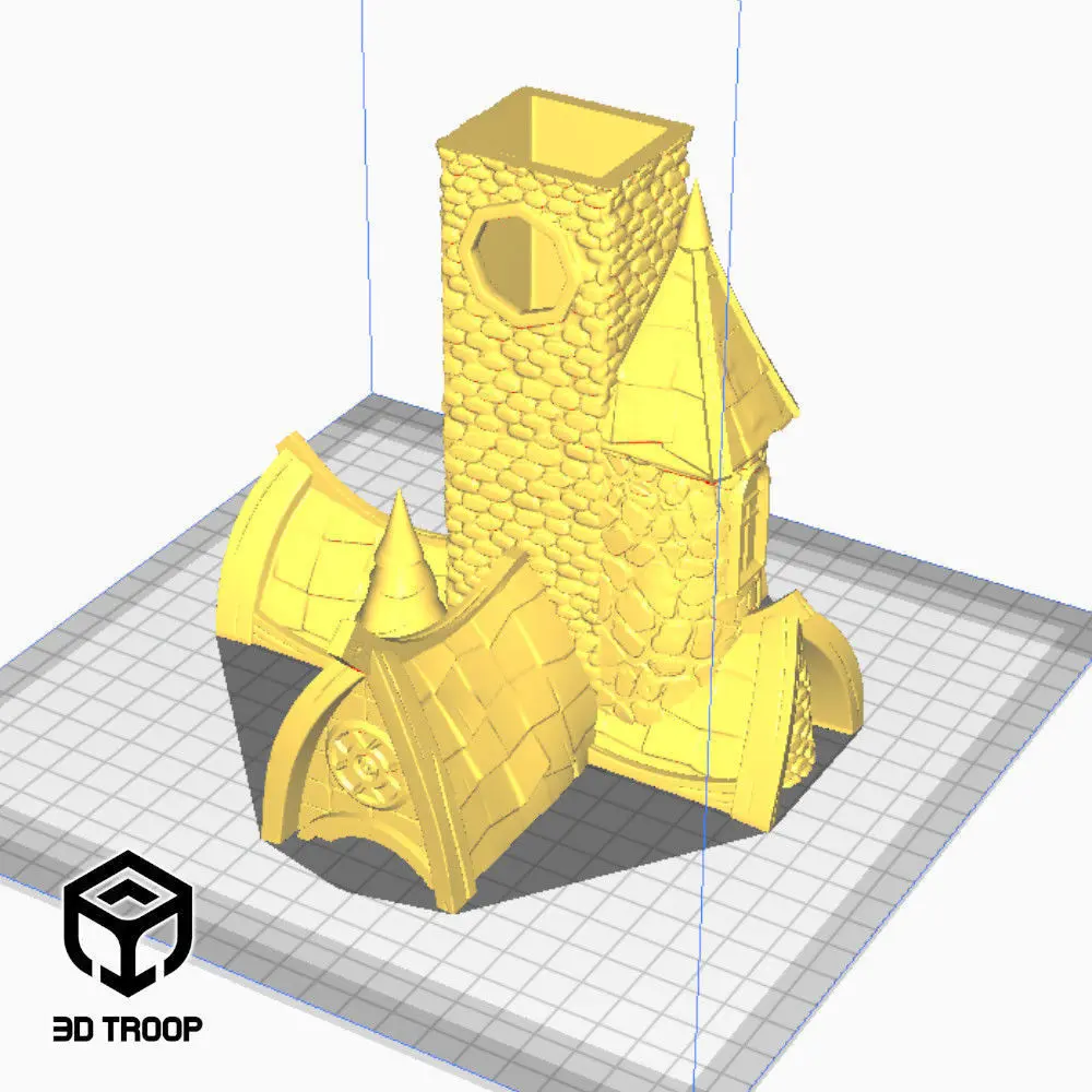 It is a 3D model to take your game scenarios to the next level, whether RPG or others. It was developed with different professionals for conceptual art, for 3D modeling and finally, for adaptation to the 3D printing manufacturing process. Therefore, they are beautiful pieces and easy to print. So we have the Destiny Church with its rooms and a tower for the dice roll.