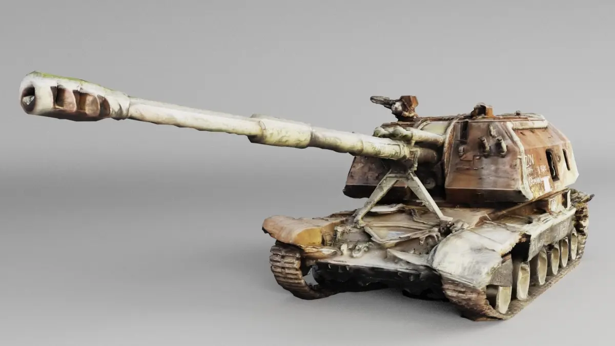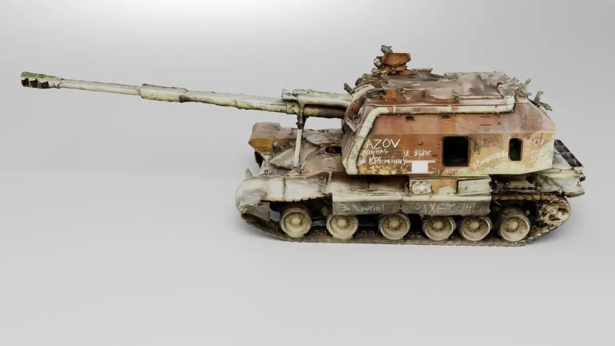 russian 2S19 Msta 152.4 mm self-propelled howitzer destroyed by Ukrainian army during russian invasion of Ukraine, 2022 war in Ukraine.