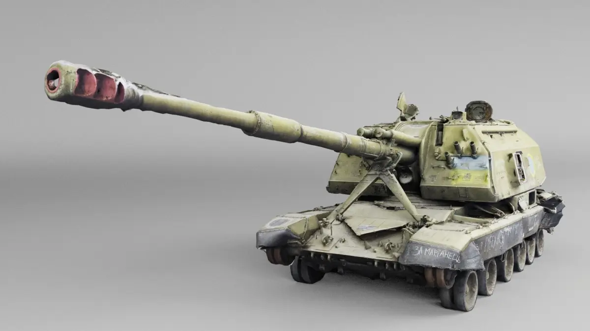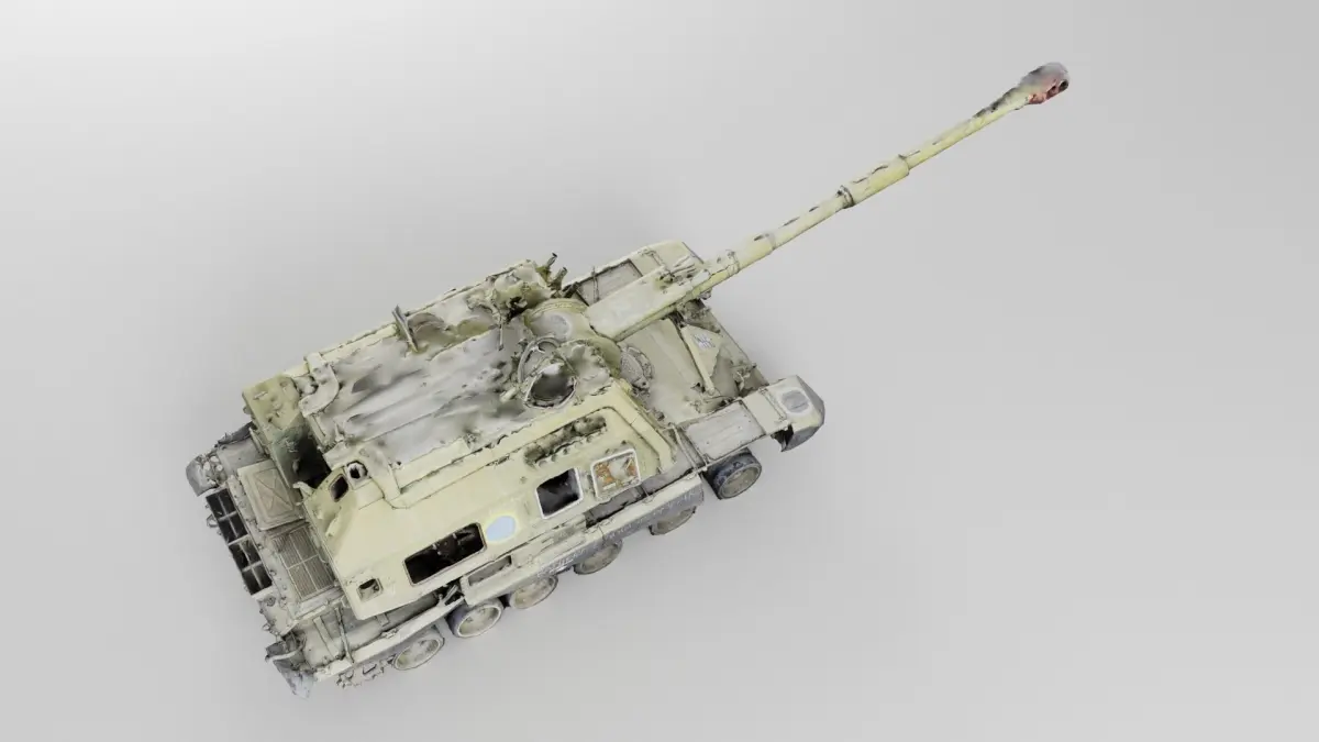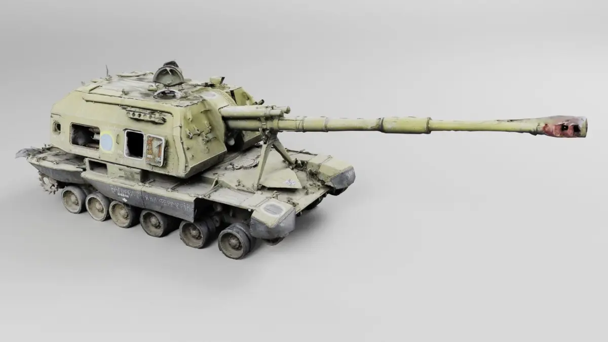 Destroyed 2S19 Msta 152.4 mm self-propelled howitzer