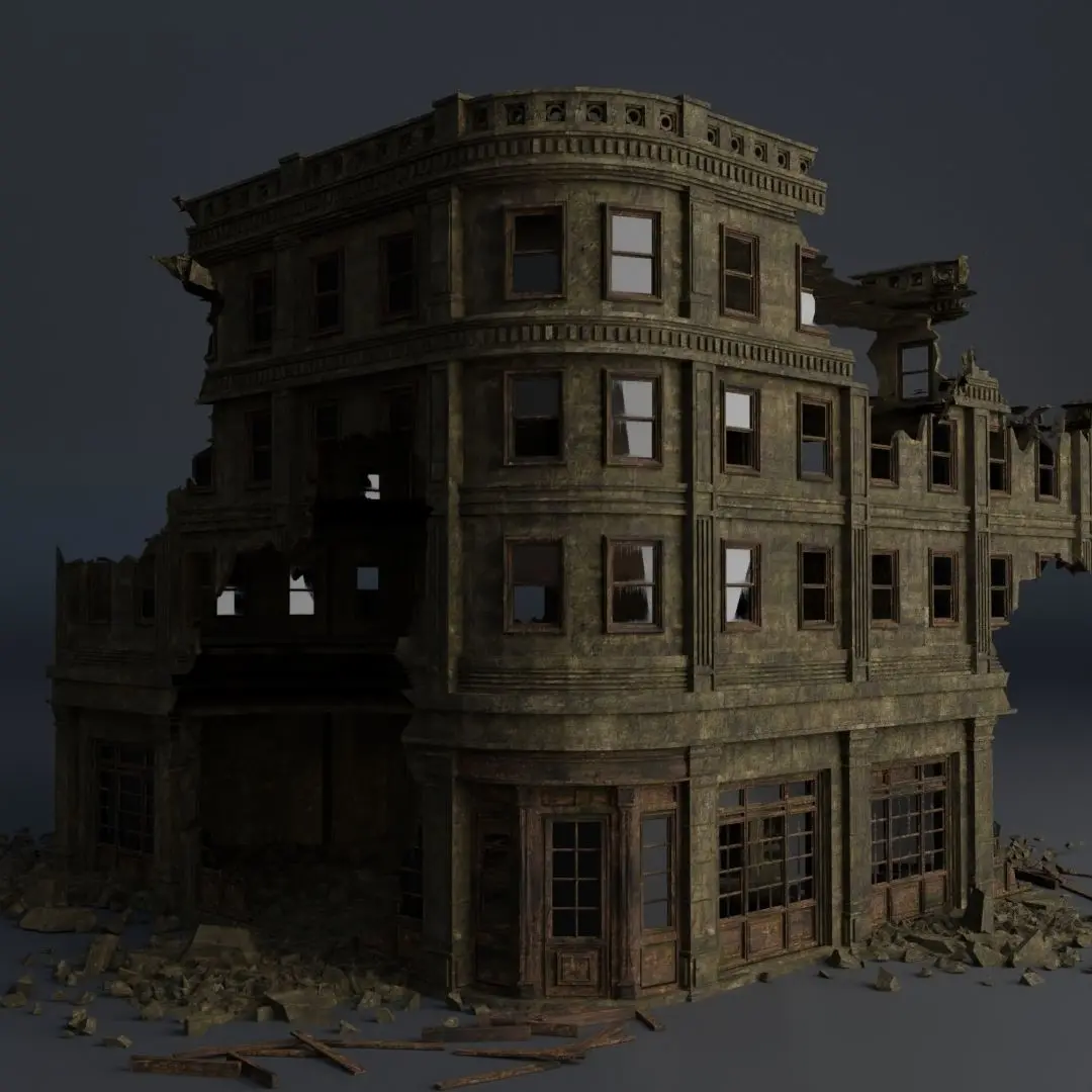 a model of a destroyed classical european building. really good model to use for film or game. 4K texture included. PBR ready. normal maps, specular, roughness etc. no triangle or ngon. only quad. uv mapped. easy if you want to change the texture.(all pbr texture included in the pack). hope you like it. make sure the check all my model here. thank you.