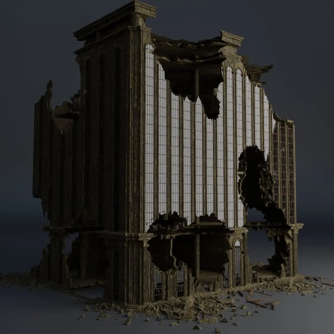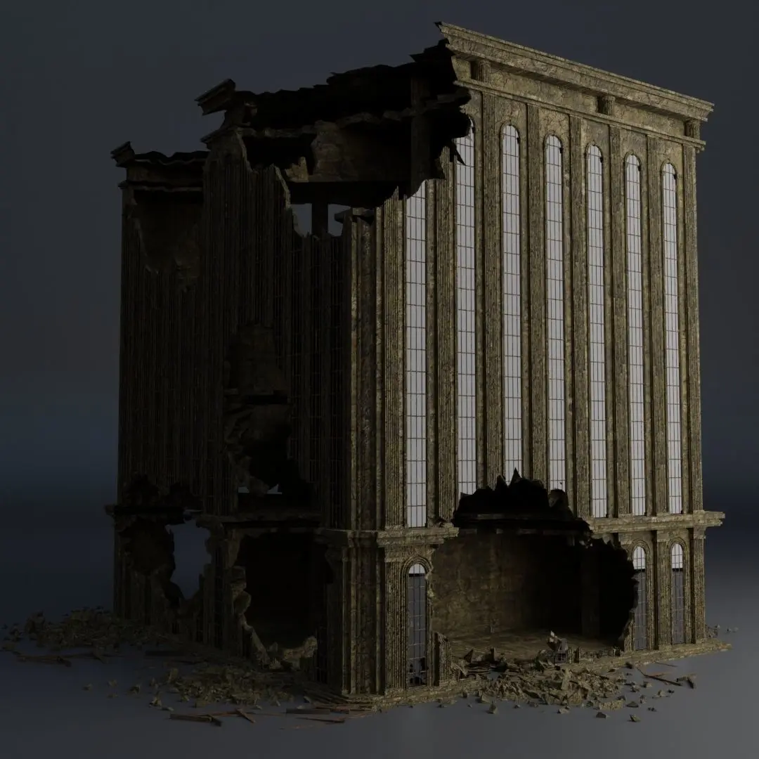 a model of a destroyed classical european building. really good model to use for film or game. texture included. PBR ready. normal maps, specular, roughness etc. no triangle or ngon. only quad. uv mapped. easy if you want to change the texture.(all pbr texture included in the pack). hope you like it. make sure the check all my model here. thank you.