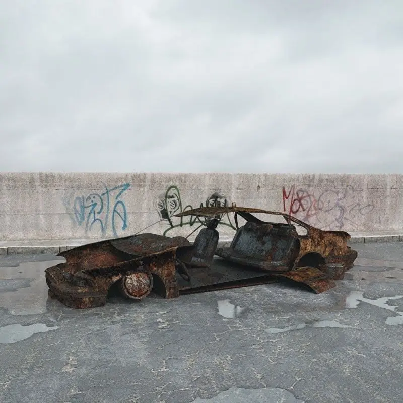 3d model of destroyed car with all textures, shaders and materials. It is ready to use, just put it into your scene.