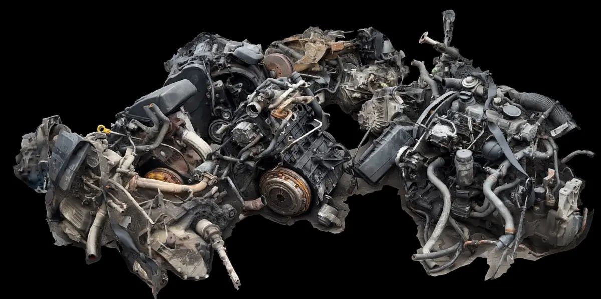 destroyed car engines part3 ground photogrammetry Low-poly 3D model