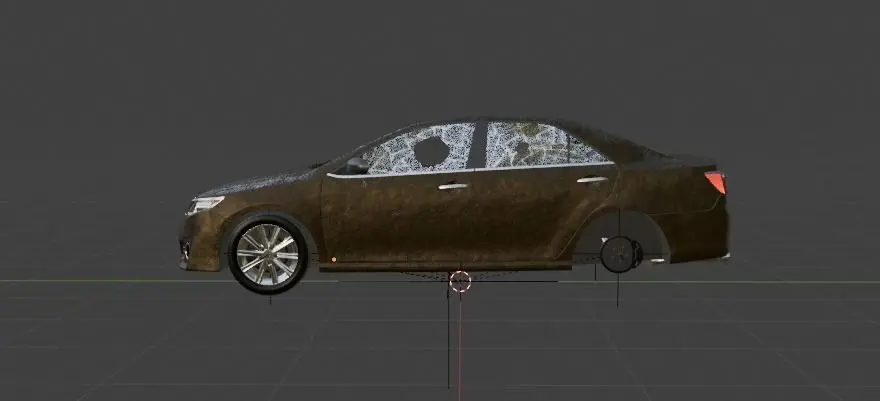 This is a broken car with broken windows and two wheels missing.Formats - blend, fbx, obj, stl.WARNING - when loading formats ( fbx, obj, stl ) there may be problems with textures.