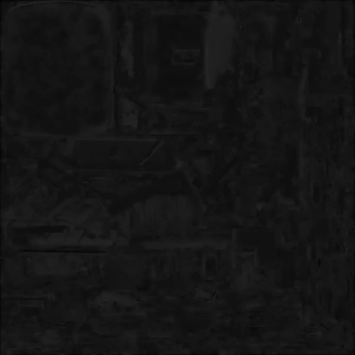 Atmospheric Textures: Realistic weathering, dark staining, and grayscale concrete coloring emphasize decay.