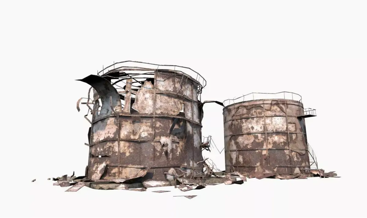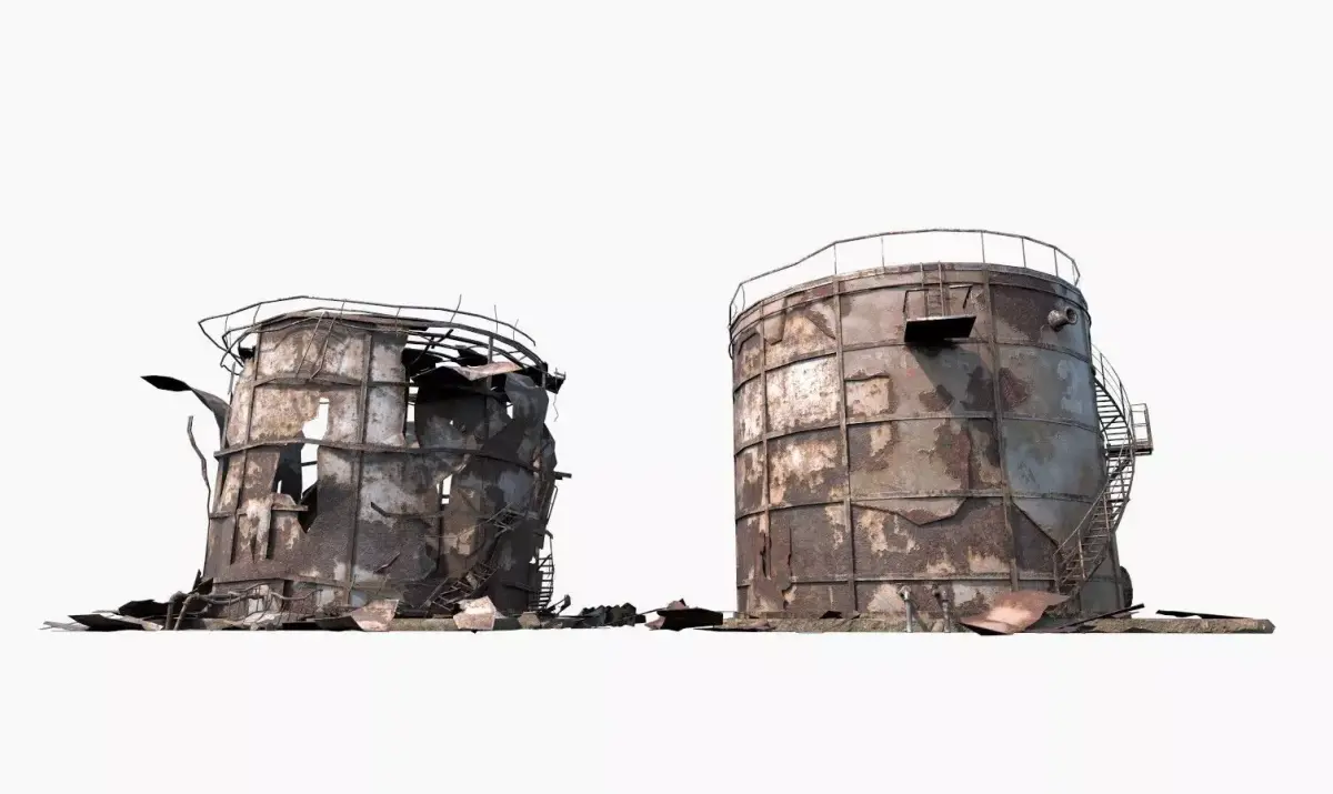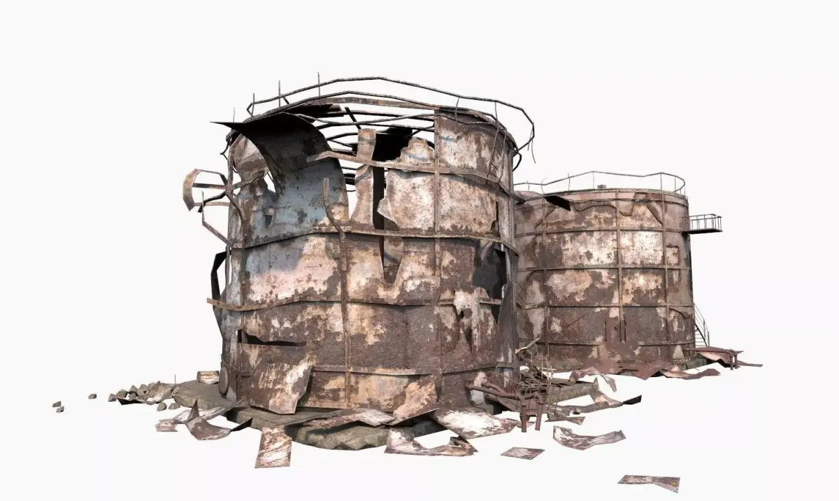 Model of Abandoned-Destroyed-Post-apocaliptic Industrial Oil Tank Duo . 2 Tanks in One Mesh. Model is very realistic. It has 11 PBR materials.Each material consists of maps are diffuse-specular-glossiness-height and normal. Also, PBR Metallic-Roughness ( Basecolor-Metallic-Normal-Roughness-Height ) workflow has been added. Model's textures has two sizes; 4K - 2K. All maps are JPG formats .