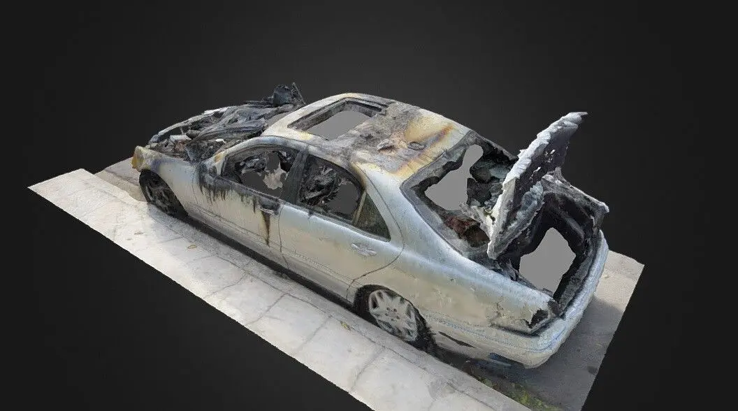 A test with Agisoft Photoscan trial on a burnt Mercedes car near my neighborhood.