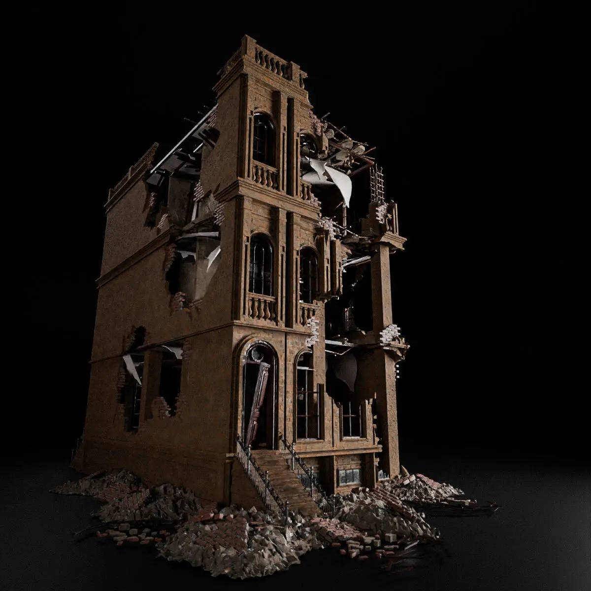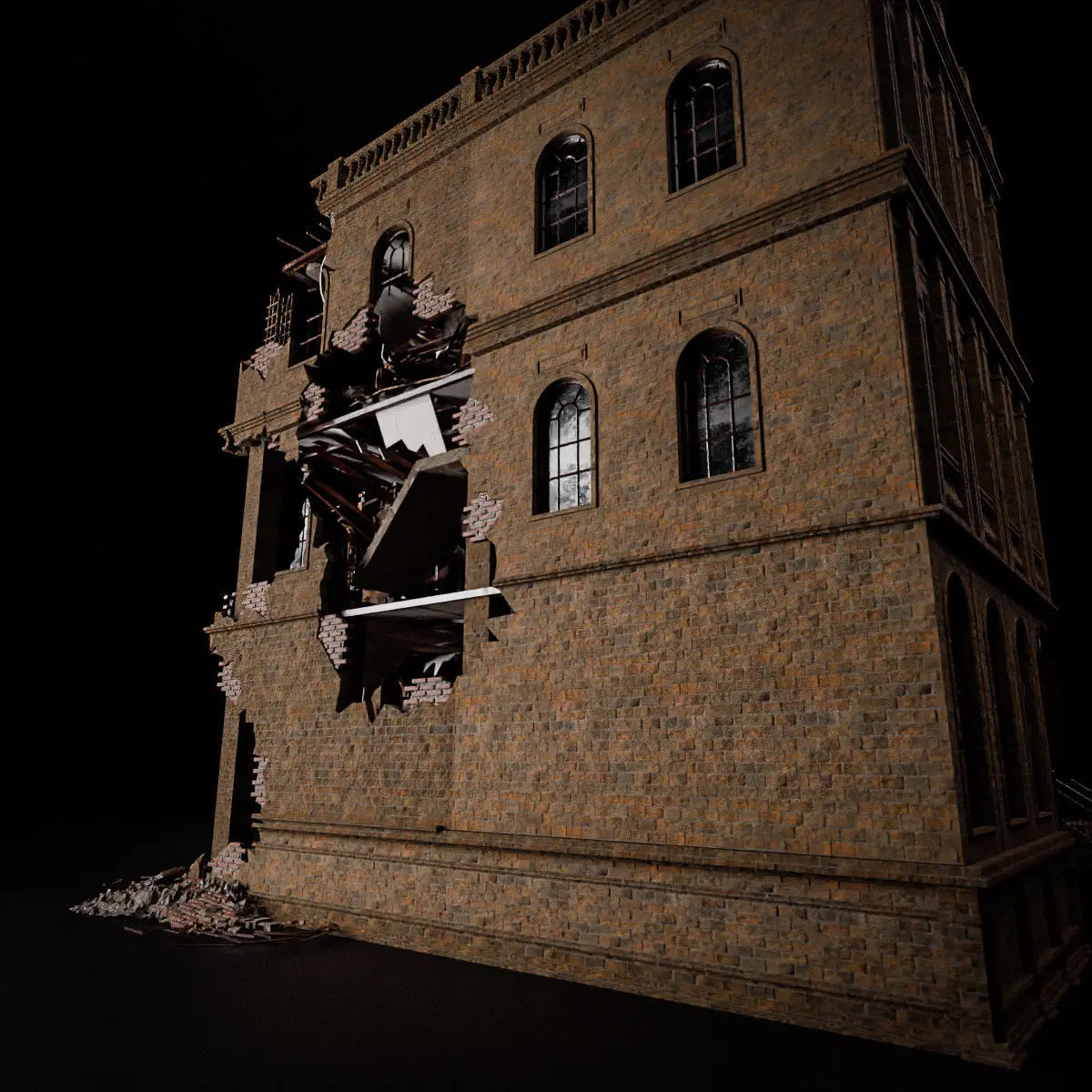 Home Catalog Historic aircraft DESTROYED OLD BUILDING POST APOCALYPSE 005 Low-poly 3D model