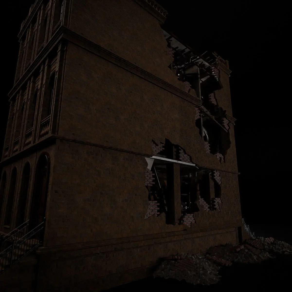 DESTROYED OLD BUILDING POST APOCALYPSE 005 Low-poly 3D model