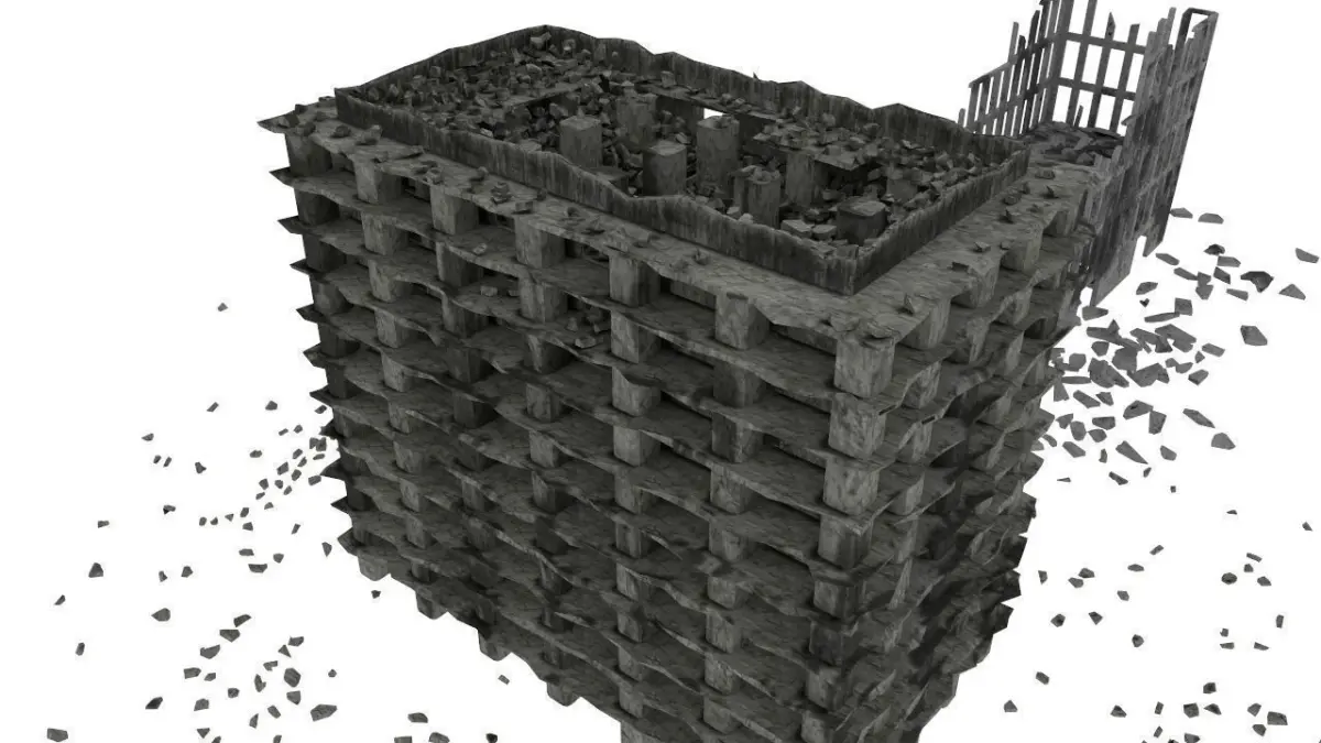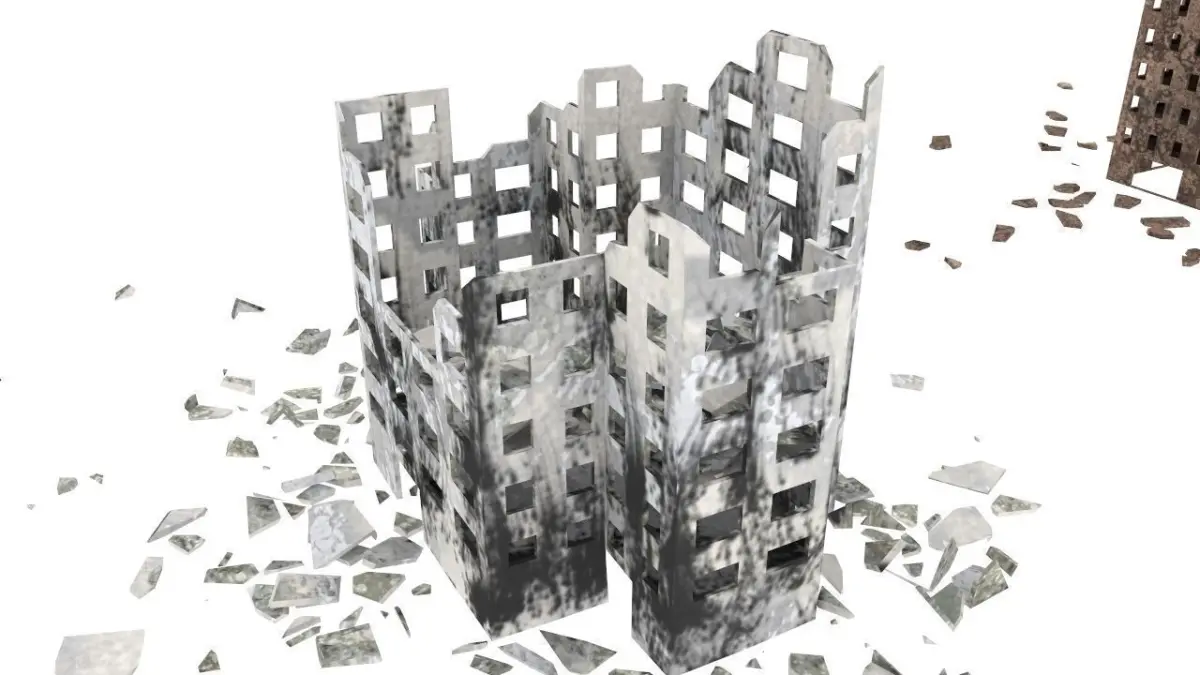 A destroyed cityscape. The pack is composed of 7 destroyed buildings and a downtown square base. The destroyed objects have a lots of debris (thus the high polycount). Each model comes in both .LWO and .OBJ version, and with a set of 4K diffuse/normal/spec maps. One building as 3 sets of 4K maps, because of its various details. These buildings are not suitable for close-up renderings, but if you have to generate with instances a huge destroyed town, for instance after bombing, war or nuclear apocalypse, they will do the job nicely, as seen on the rendered scene (beware, this render includes elements that are not in the pack).