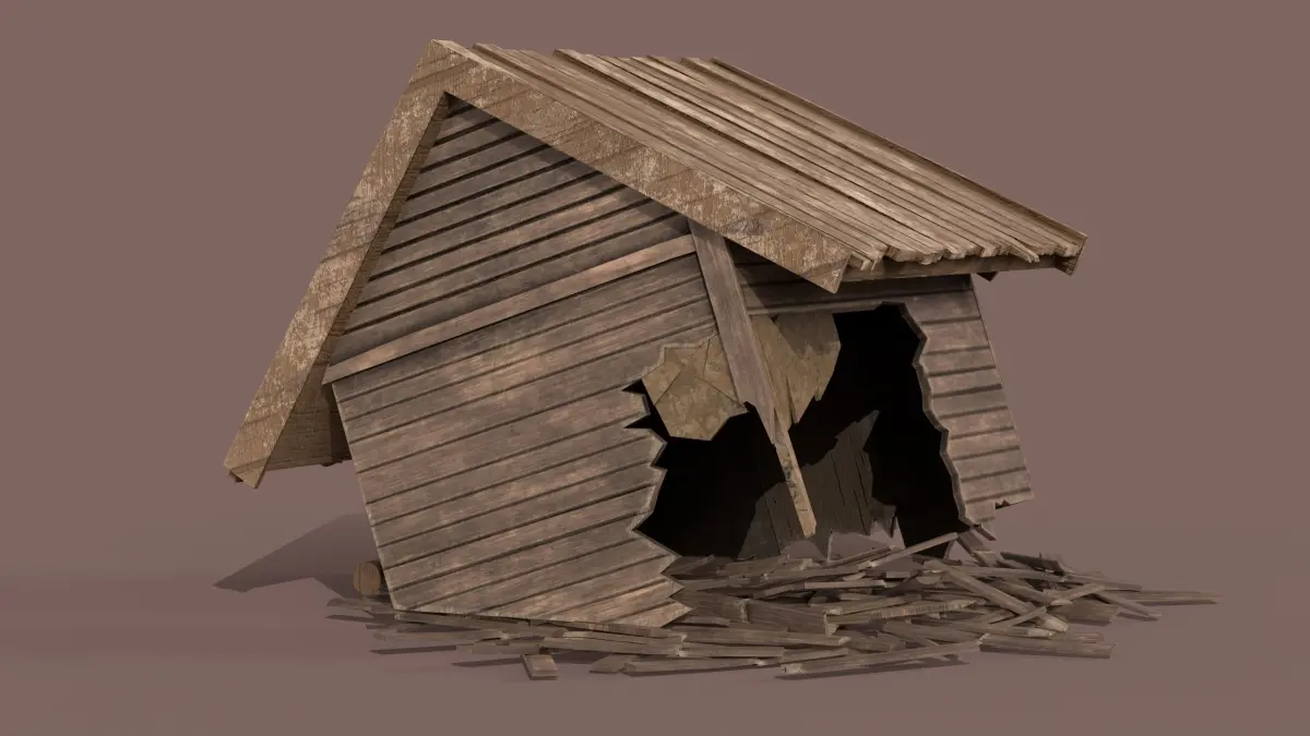 Destroyed Wooden House. Ready for import into game engines(Unreal, Unity, etc.).