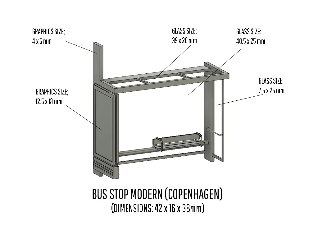 Bus square set. Includes two kiosks, one modern bus stop and a range of different bus stop signs. The set also include standing and sitting passangers.Ready-to-print super detail items set for Model Railroad in H0-scale. All neccesary preparations are made to simplify print including correct supports.Simply download, un-zip, save to USB and print. Enjoy!