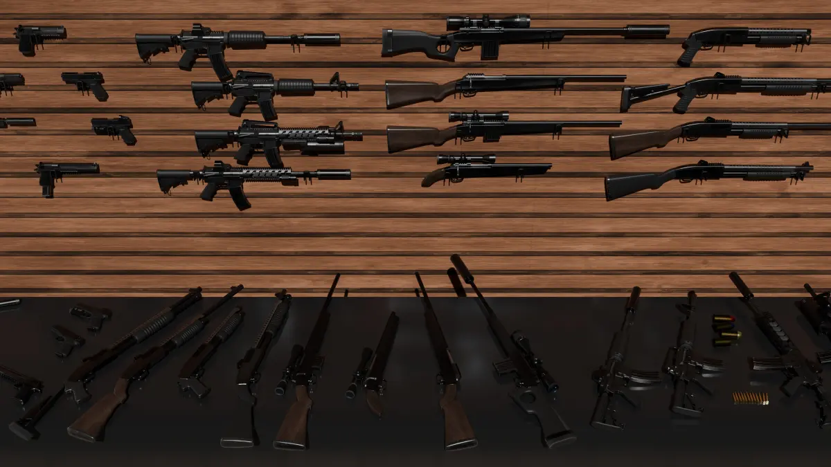 detail low poly weapon pack shotgun sniper m4 g19 dEgle Low-poly 3D model