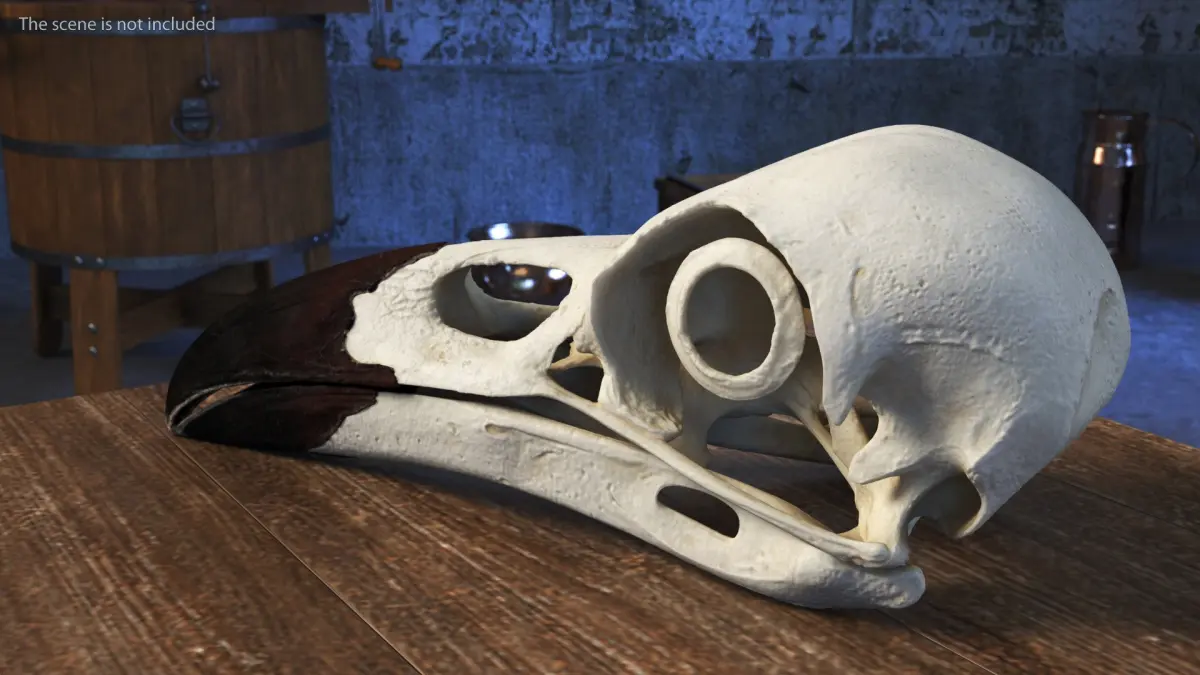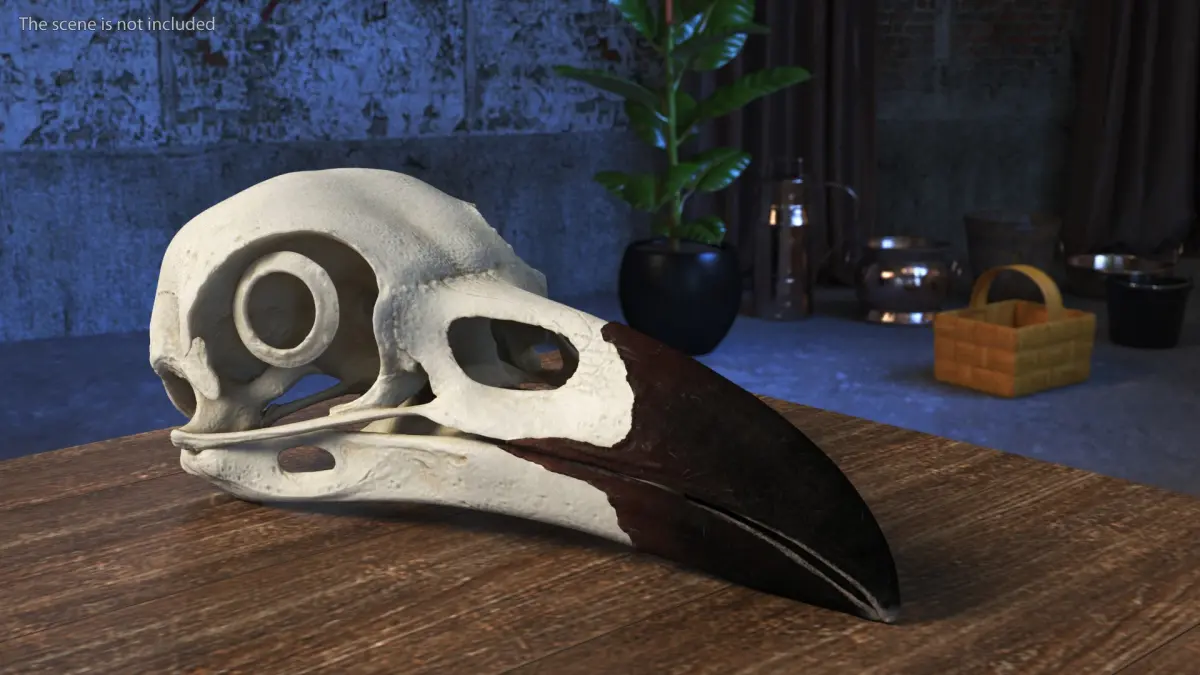 For scientific illustration, artistic references, halloween celebration, gothic and fantasy artwork, natural history museum displays, taxidermy modeling, forensic anthropology, tabletop gaming accessories, sorcerer props, decorative skull art, concept art development, interior decor elements, anatomical study materials, fantasy fairy tale props, ornithology studies, educational resources, and bird anatomy analysis.