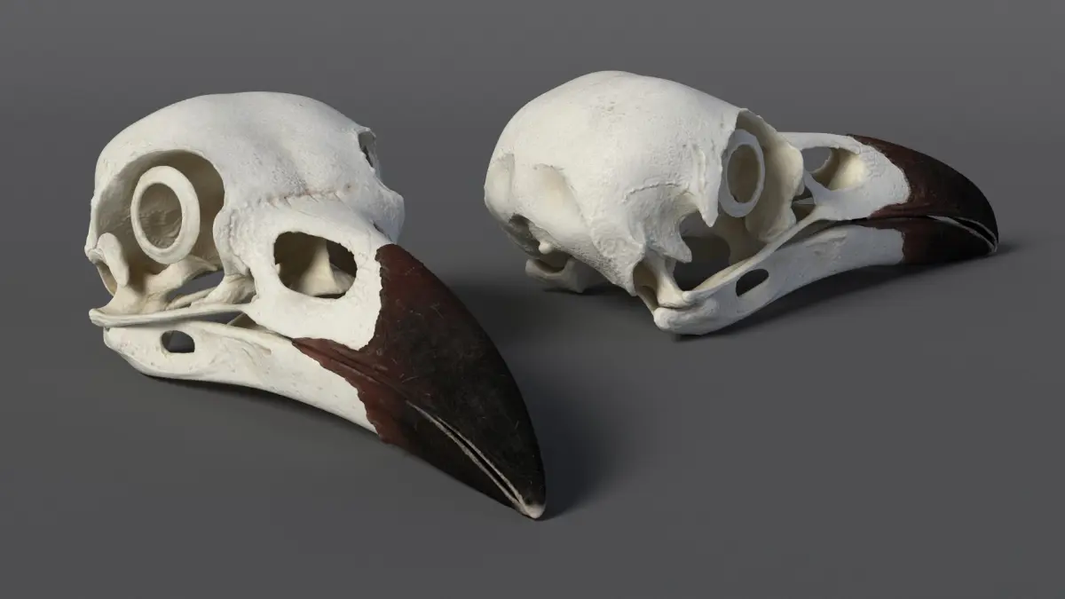 Detailed Crow Raven Skull with Eye Support Bone is a three-dimensional model of corvid skull, representing the distinct skeletal structure of a crow or raven.