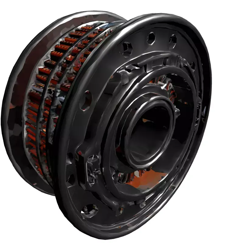 This is a high-fidelity 3D model of a complex electro-mechanical engine component, meticulously designed with intricate details. It perfectly represents a futuristic or advanced industrial part, possibly a motor stator, turbine element, or an advanced bearing assembly. The model showcases a sleek, polished metallic exterior with precisely engineered internal structures, prominently featuring realistic copper coil windings. This asset is ideal for a wide range of applications, including professional engineering simulations, detailed product visualizations, and stunning architectural renderings where complex machinery needs to be displayed with utmost realism. It also serves as an excellent resource for creating compelling sci-fi environments, immersive game development projects for high-detail assets or cutscenes, and sophisticated digital art compositions. The clean topology ensures smooth rendering and easy integration into various scenes. The model comes with PBR (Physically Based Rendering) textures, providing accurate material representation for both metallic surfaces and the copper coils, ensuring photorealistic results. It is fully UV unwrapped for easy texture customization and scaling. While highly detailed for static renders, it can also be optimized for real-time applications like AR/VR experiences or high-end game engines by implementing appropriate levels of detail (LODs). Supported file formats include GLB, OBJ, STL, ABC, DAE, FBX, USD, and PLY, ensuring broad compatibility across different 3D software and engines.