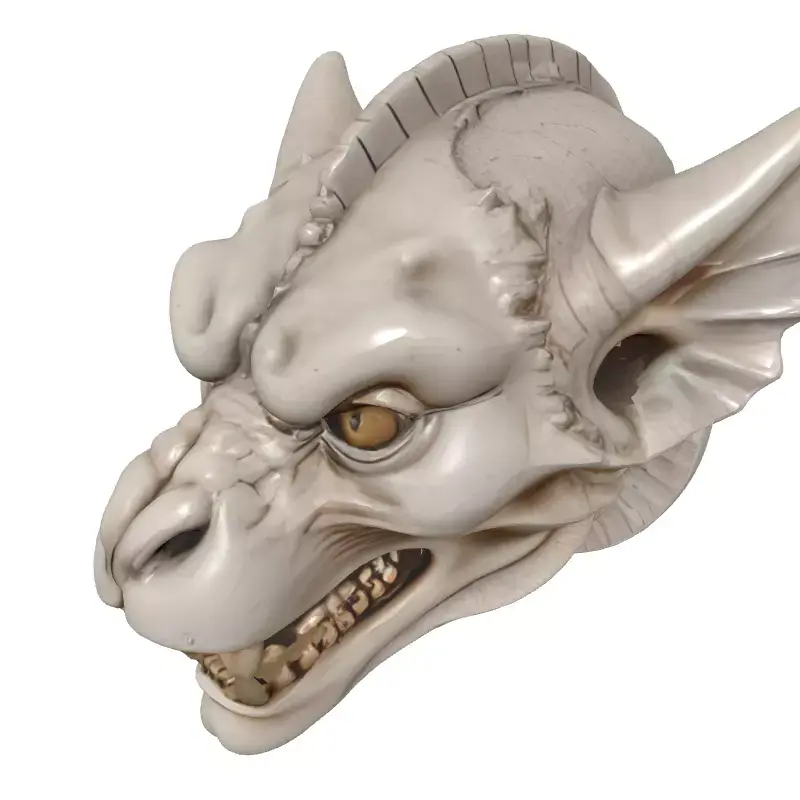 This meticulously crafted 3D model presents a highly detailed fantasy dragon or gargoyle head, designed with intricate anatomical features that evoke a sense of ancient power and mythical presence. The sculpture showcases finely sculpted scales, sharp predatory teeth, prominent horns, and expressive, piercing eyes, all rendered with a realistic stone-like texture that highlights its gothic and fantastical aesthetics. This versatile model is ideal for a wide range of creative projects, including immersive game development, where it can serve as an imposing static prop, a fearsome statue, or a decorative element in dark fantasy settings. It is also perfectly suited for architectural visualization, adding a touch of grandeur and mystery to gothic cathedrals, ancient ruins, or contemporary fantasy-themed structures. Digital artists can leverage this model for creating stunning renders, concept art, or as a base for further sculpting and character design. Furthermore, its robust detailing makes it an excellent candidate for 3D printing, allowing for the creation of impressive physical collectibles, decorative wall mounts, or intricate tabletop gaming pieces. The model is prepared to support common 3D file formats such as GLB, OBJ, STL (ideal for 3D printing), FBX, USD, DAE, ABC, and PLY, ensuring broad compatibility across various software platforms. With its high level of detail and clean topology, it is suitable for high-quality static renderings and can be optimized for real-time applications if required, by generating lower-poly versions and PBR textures. It features clean geometry and is ready for further texturing or immediate use in scenes where a powerful, mythical creature bust is needed.