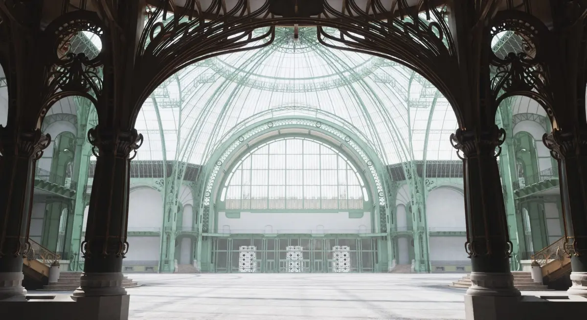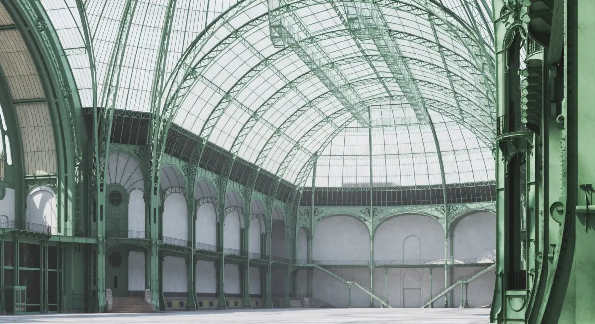 Detailed and realistic model of the interior of the Grand Palais museum and exhibition hall in Paris, France (exterior isn't modeled).