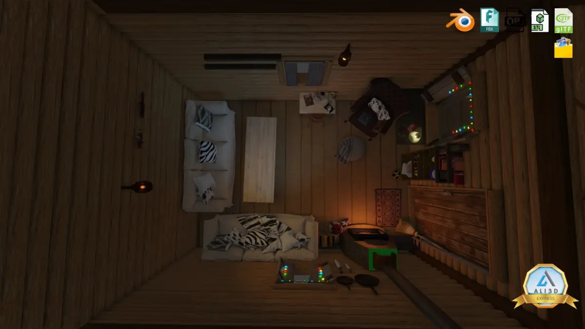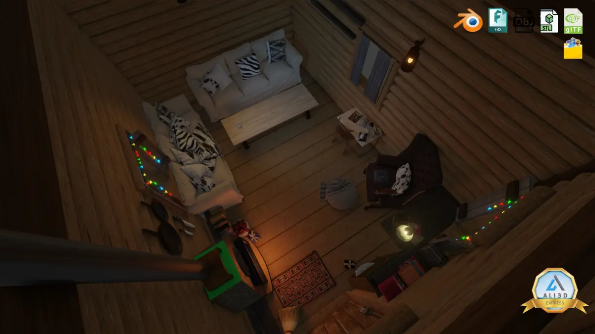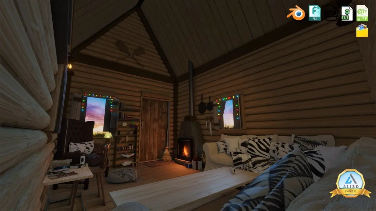 Detailed Log cabin with Interior.