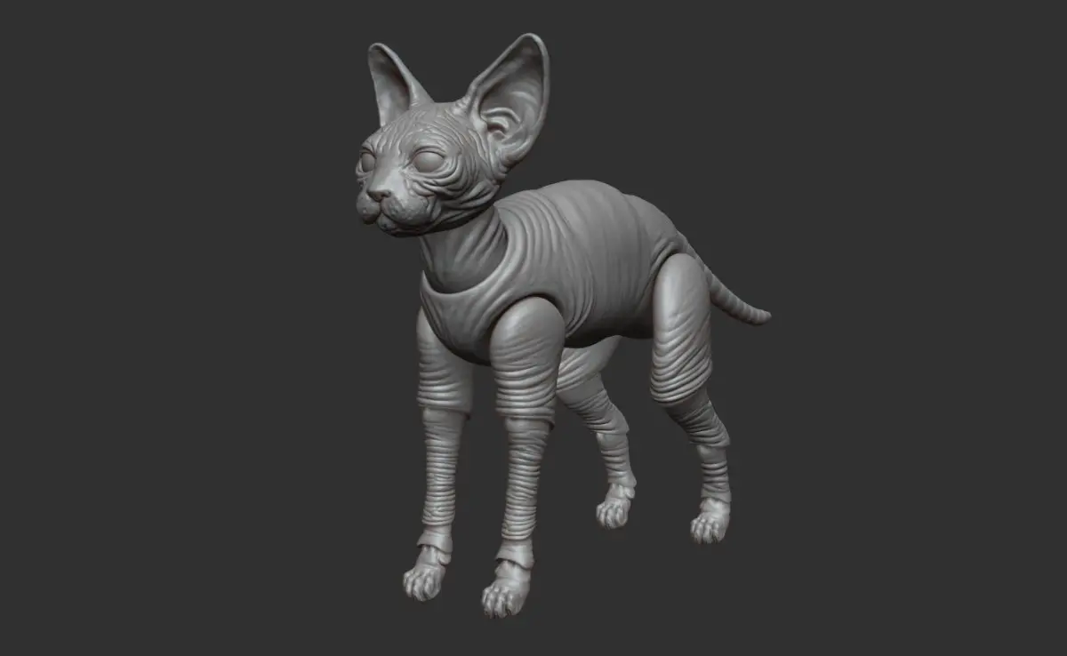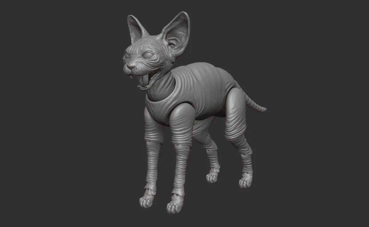 Time ago I discovered the BJD (Ball Jointed Dolls) and I decided to do my own version of a detailed sphynx cat doll for 3D printing. All sculpted in Zbrush.