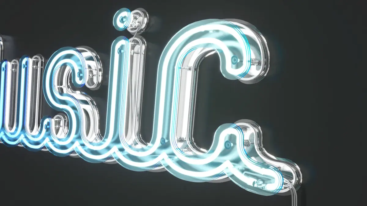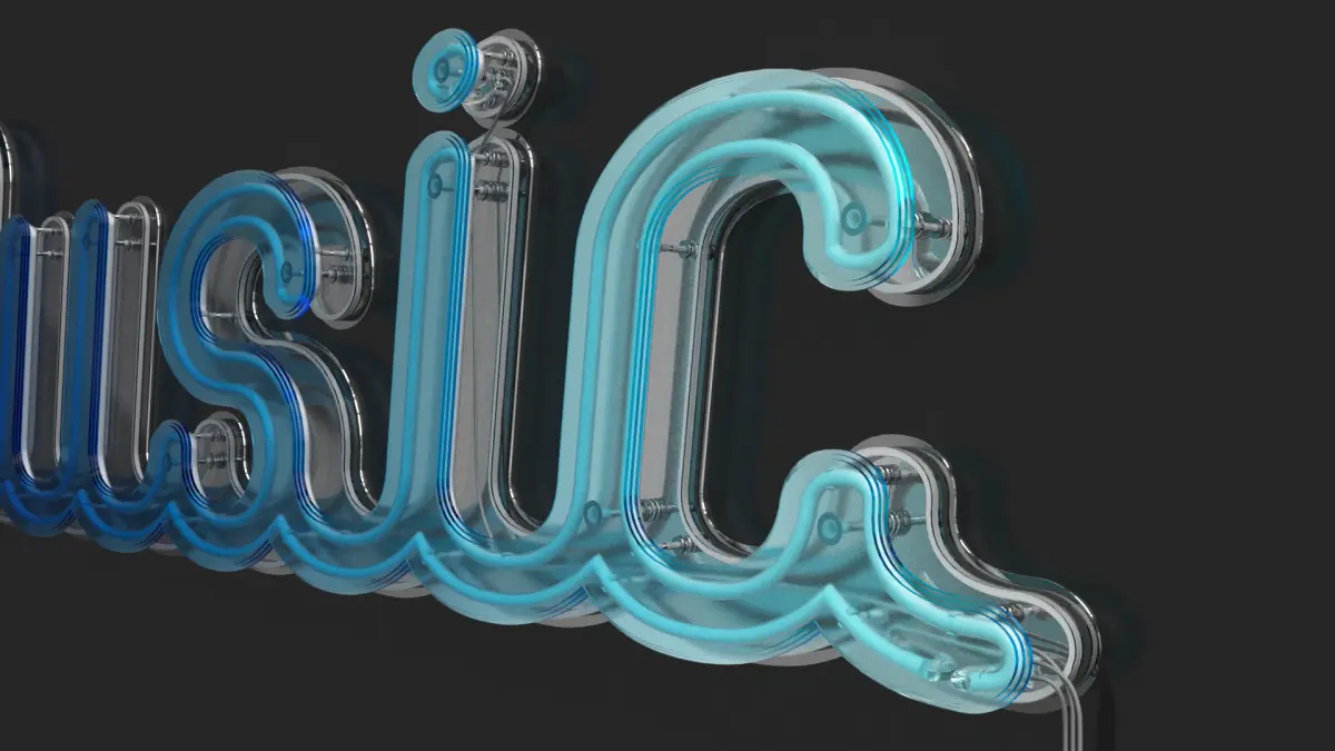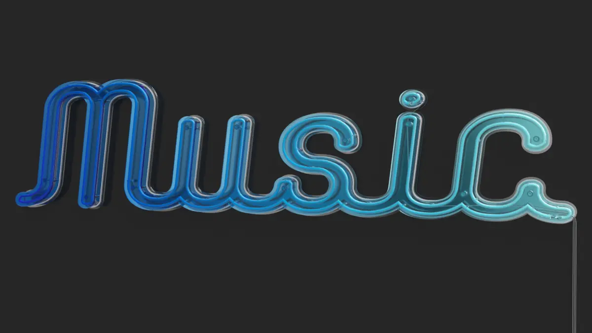 Music word neon dimentions: H:33cm L:120cm W:3,2cm