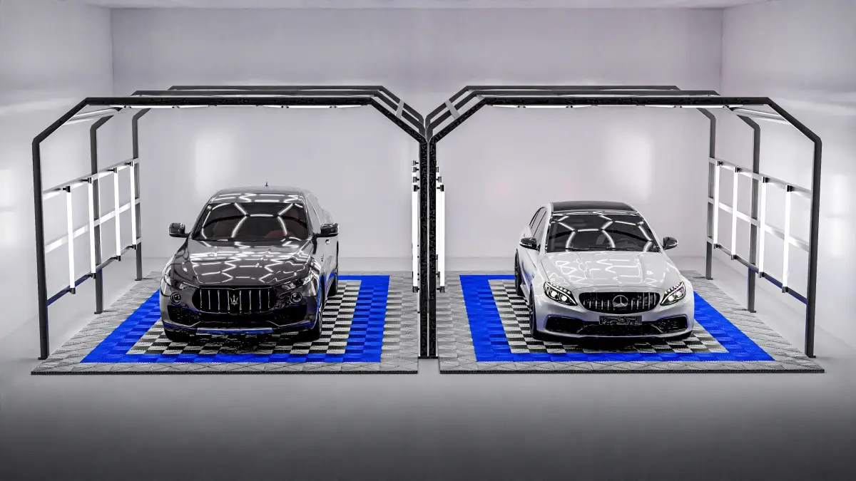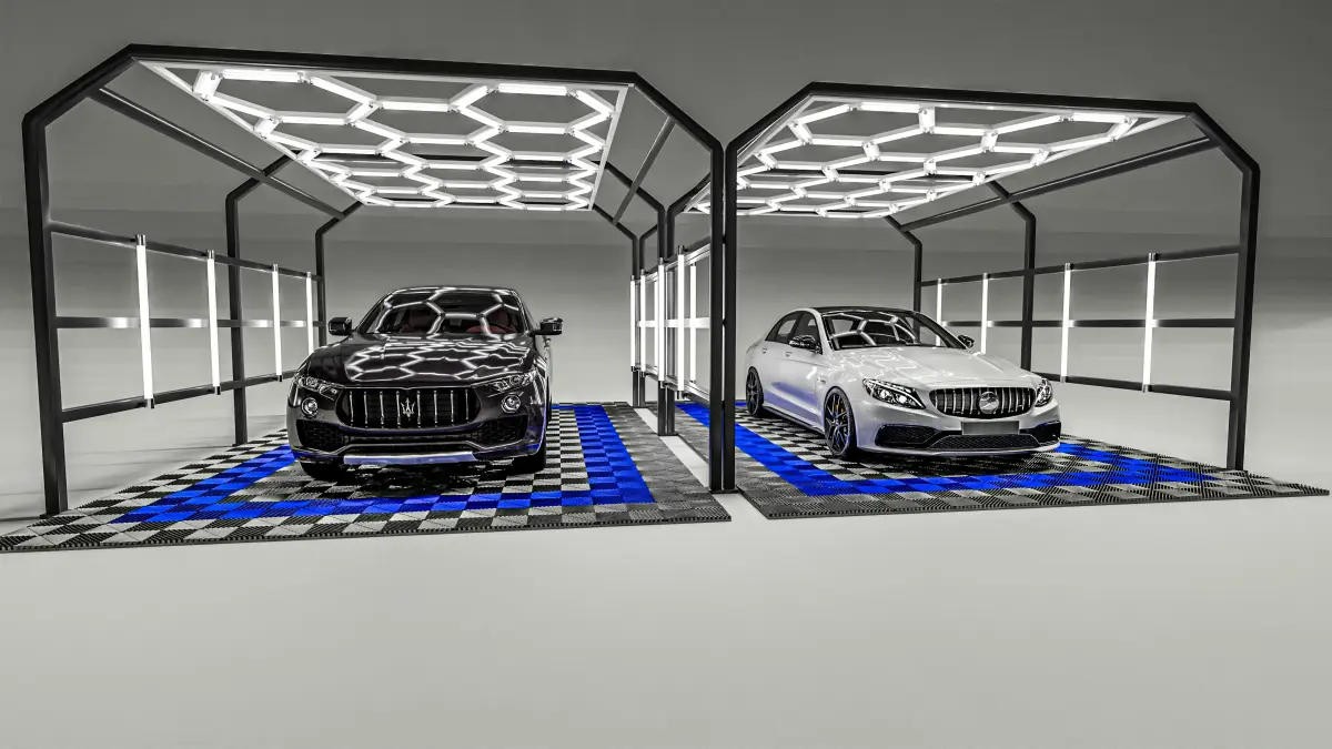 Detaling studio showroomdetailed model tile floor hexa light panelsperfect for car renderstiled floor used in detailing studios looks perferc in every car renders and hexa palen lightas perfecty shows shape of every car.