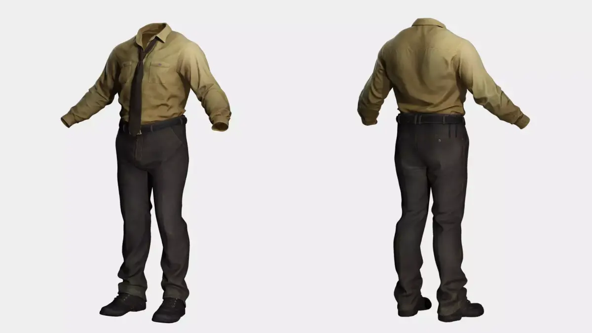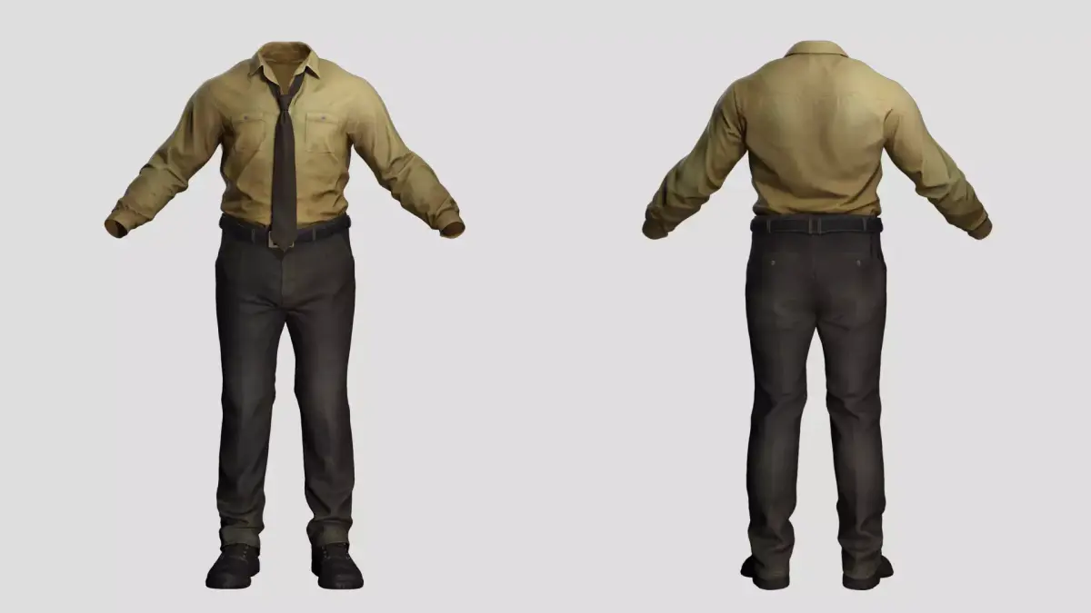 This realistic detective outfit is designed for use in cinematic scenes, crime investigation games, noir narratives, or urban storytelling. The clothing includes: