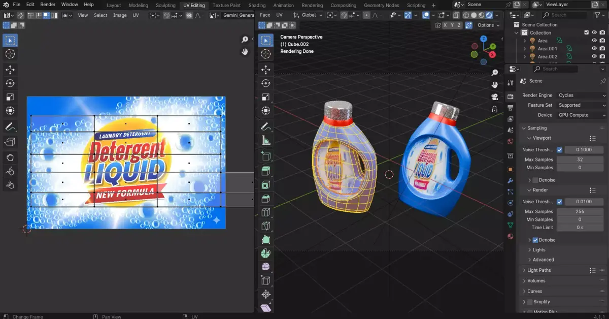 Detergent Bottle – Simple Realistic 3D Model: This is a realistic AA battery 3D model made in Blender. The model has a clean shape, smooth edges, and accurate positive/negative terminals. It uses simple but effective PBR materials that look good in both Cycles and Eevee.The battery is fully UV unwrapped, and the textures are neatly applied, so you can easily change the colors, text, or design if needed. The mesh is optimized and low enough for fast rendering while still giving a detailed look in close-up shots.