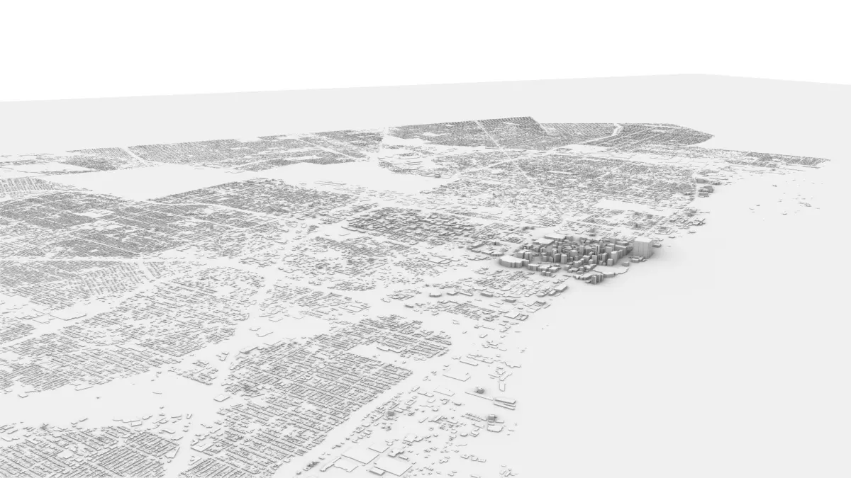 - This is a basic 3D model of Detroit, which covers nearly 100% of the city, with the exception of Detroit Metropolitan Airport