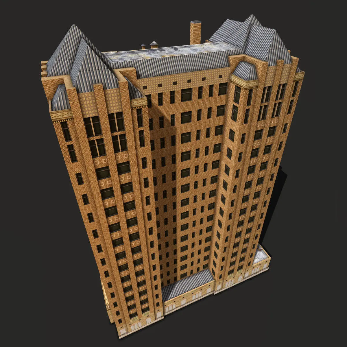Low poly abandoned skyscraper model. Ready to use in 3d applications and games.