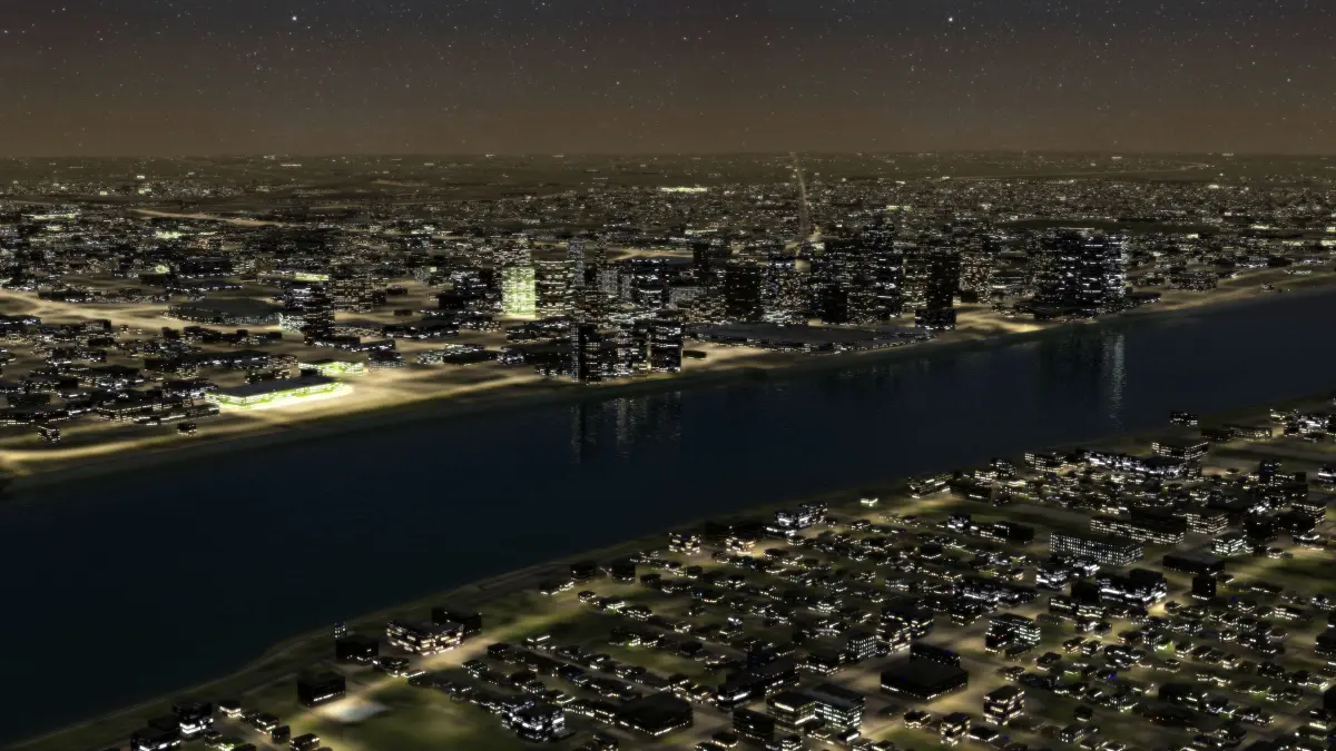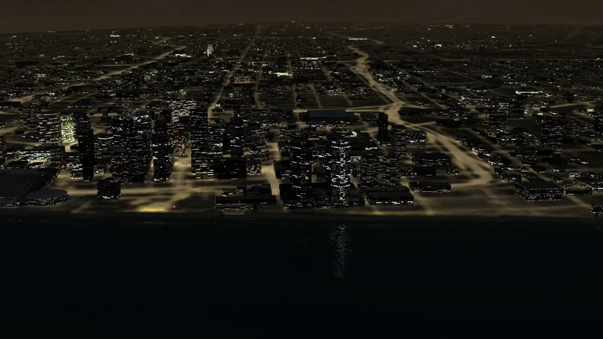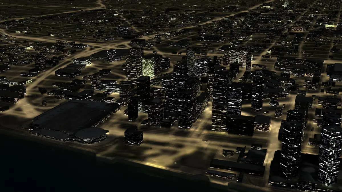Detroit USA Night Time City. Daytime version of this model is also available. overs 25km x 25km, thousands of unique buildings, major and minor roads, sidewalks, railway tracks, water surface, building rooftop clutter and more.