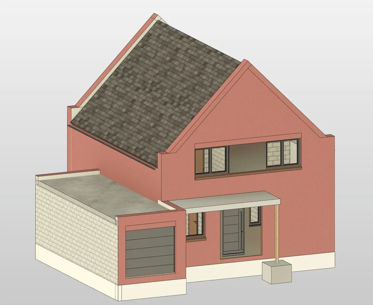 Dieses sorgfältig erstellte 3D-Modell eines Einfamilienhauses, entwickelt in Autodesk Revit 2024, bietet eine ideale Grundlage für Planung, Visualisierung und Bauausführung.