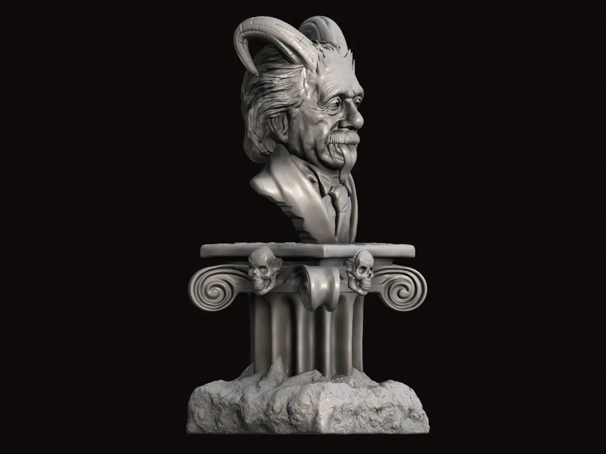 I created the DEVILSTEIN model by interpreting Einstein. You can have a DEVILSTEIN bust with 3D printing. .Stl, .Obj and .fbx files are available. The size of the asset in the file is 30 centimeters. You can adjust the dimensions you want.