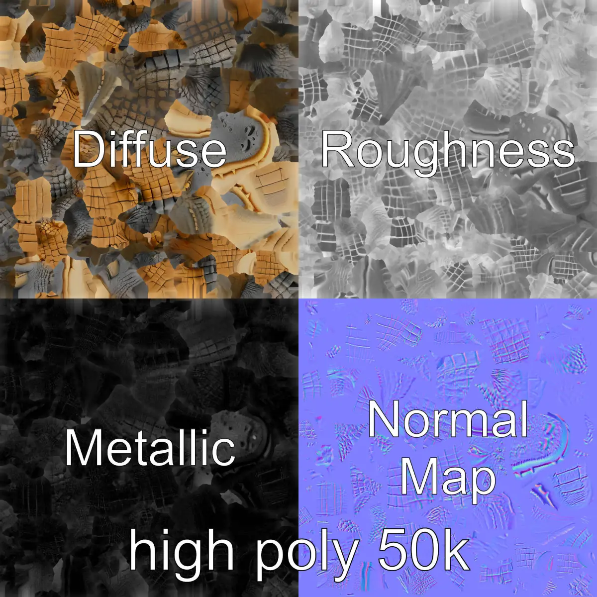 The model's textures are PBR, Diffuse, NormalMap, and reflection/roughness/metallic, which are suitable for any modern rendering engine. All models are accurately unwrapped and have no overlapping UVs.