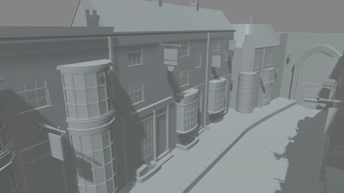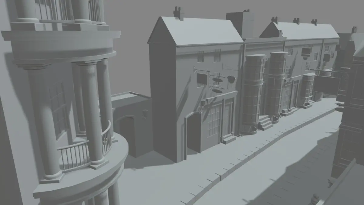 This model contains a great scene from the world of Harry Potter, the Diagon Alley ( NO INTERIOR), this is a scenary based on the J.K. Rowling history.